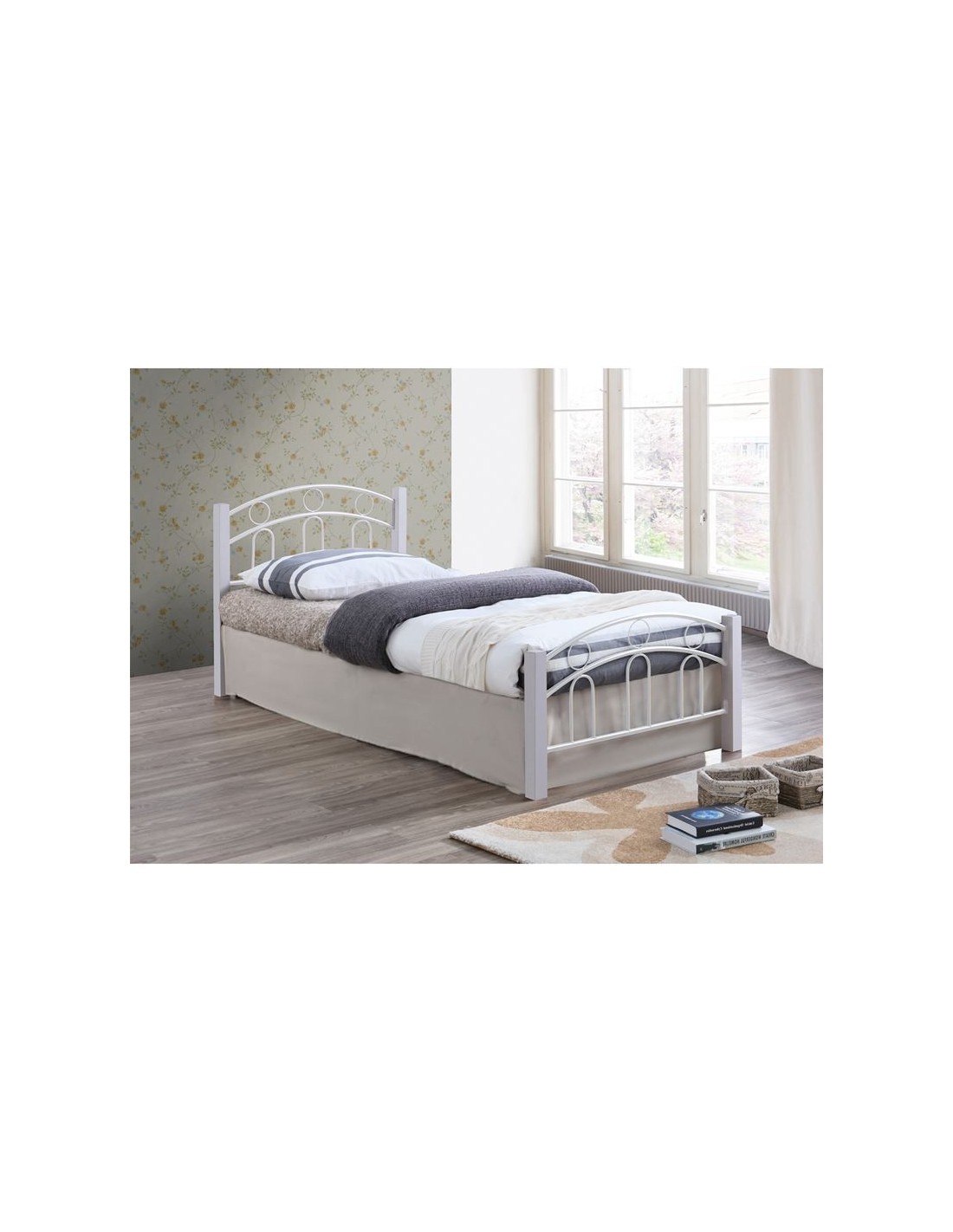 NORTON Bed (for Mattress 140x190cm) Metal White-Wood White