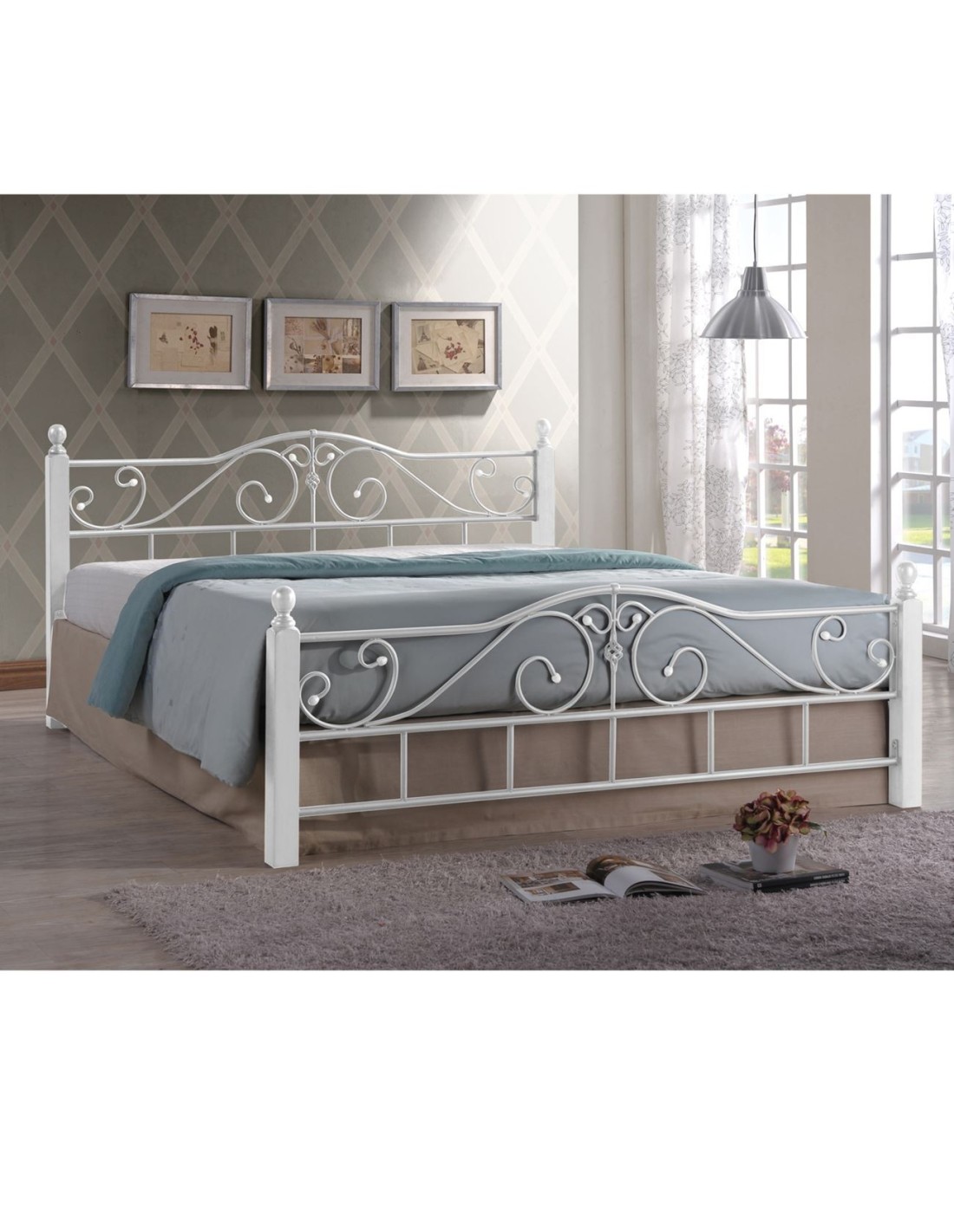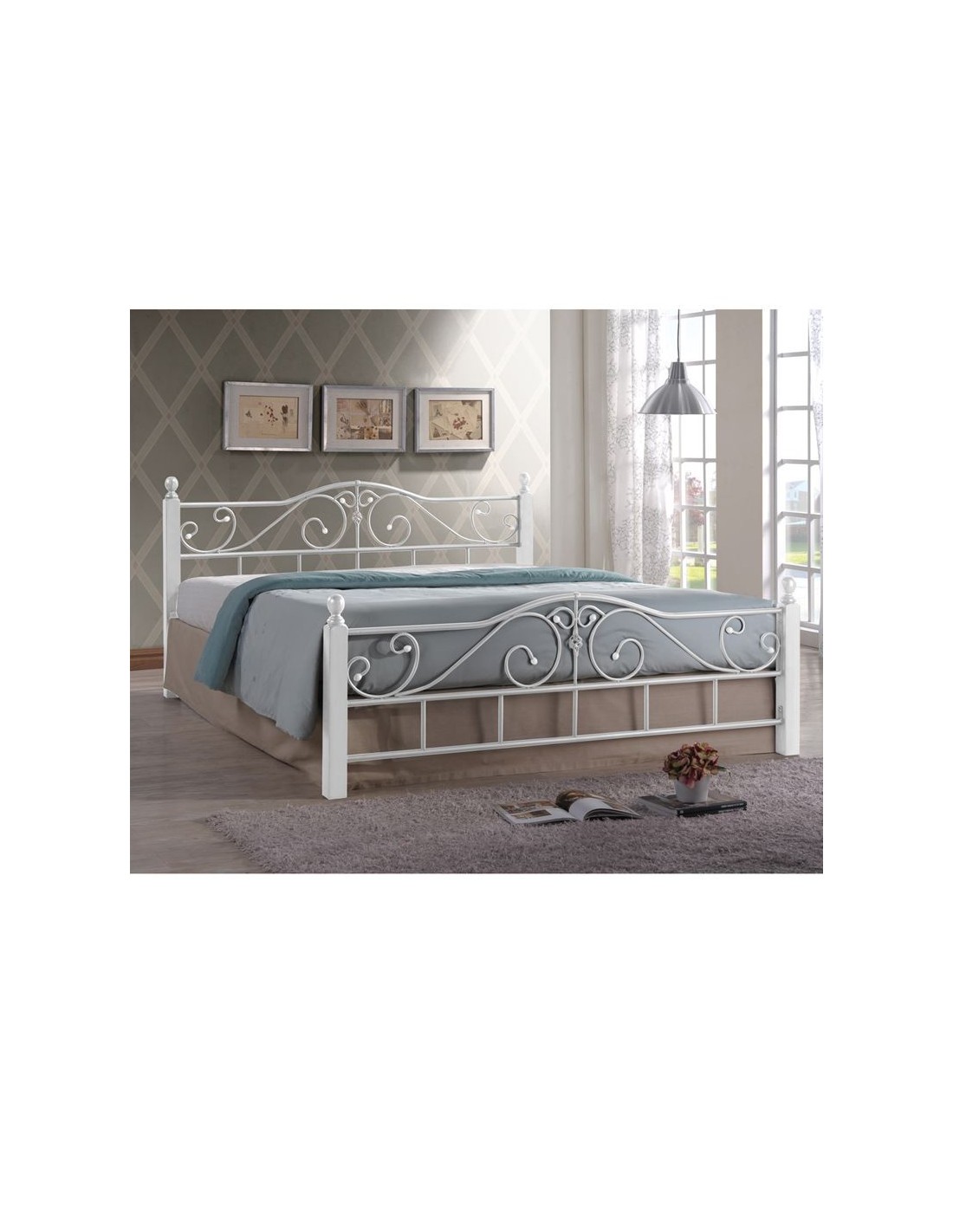 ADEL Bed (for Mattress 160x200) Metal White-Wood White