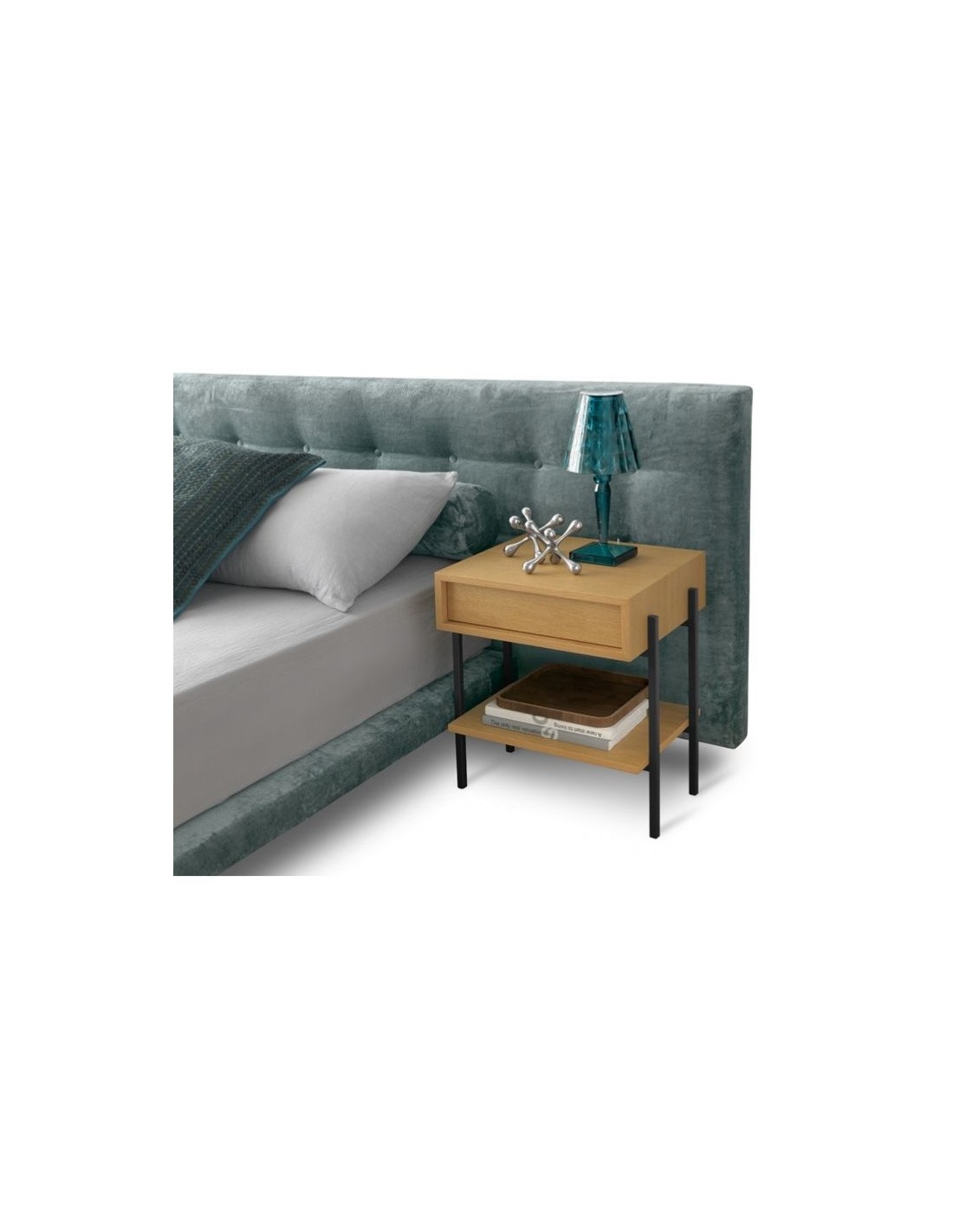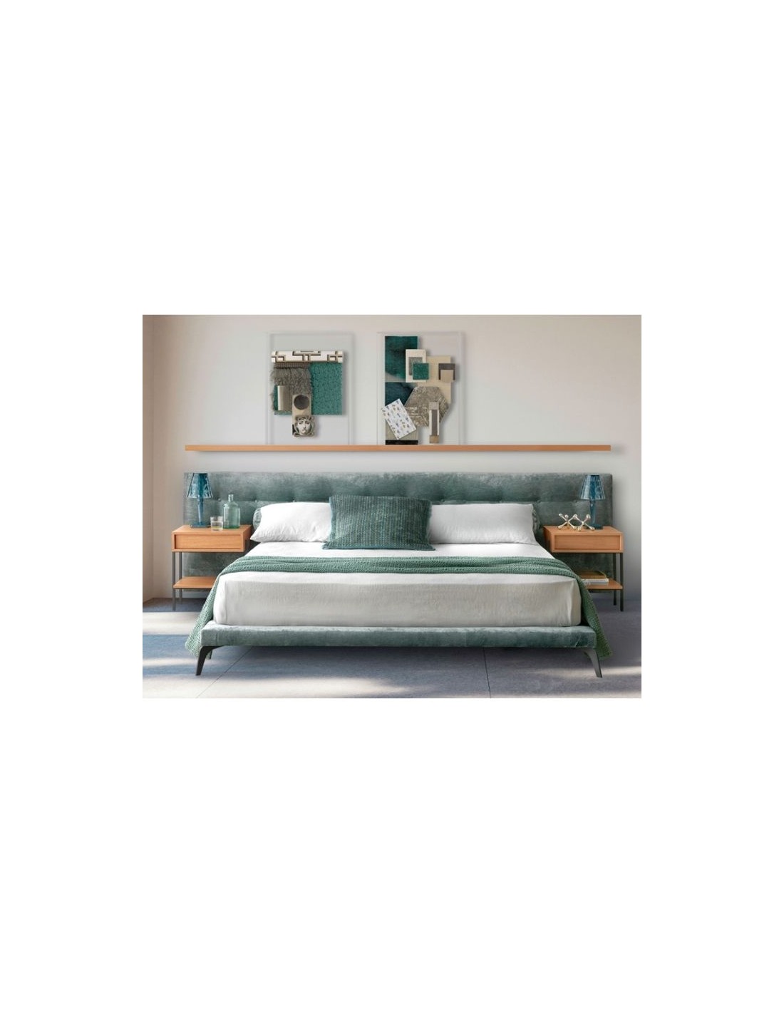 It can be combined with all decoration types, as well as with any style or bedside table wood colour, as it is upholstered with fabric of your choice.