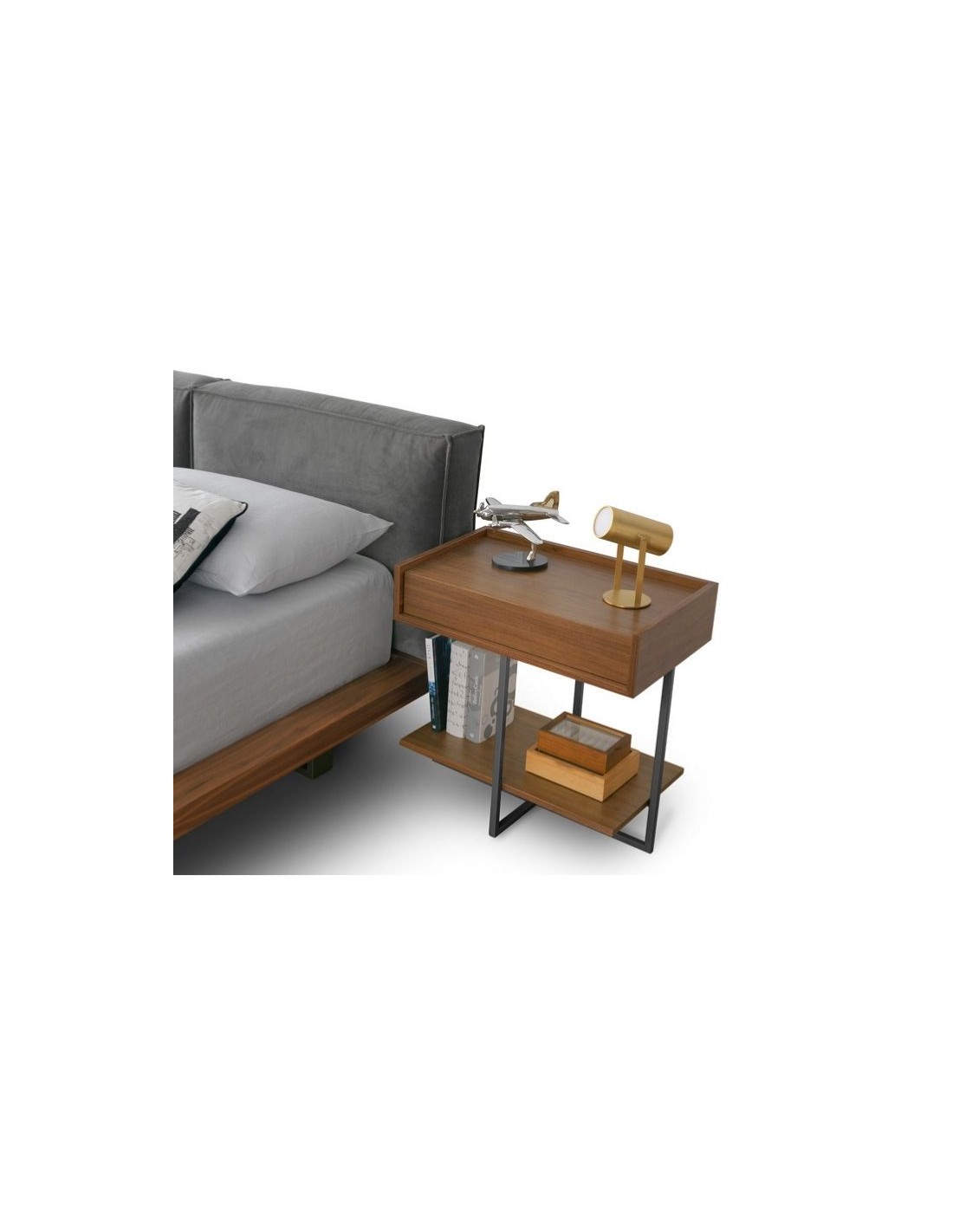 It can be combined with all decoration types, as well as with any style or bedside table wood colour, as it is upholstered with fabric of your choice.