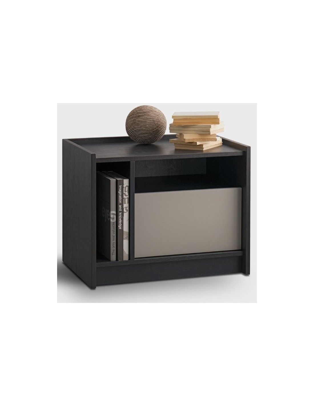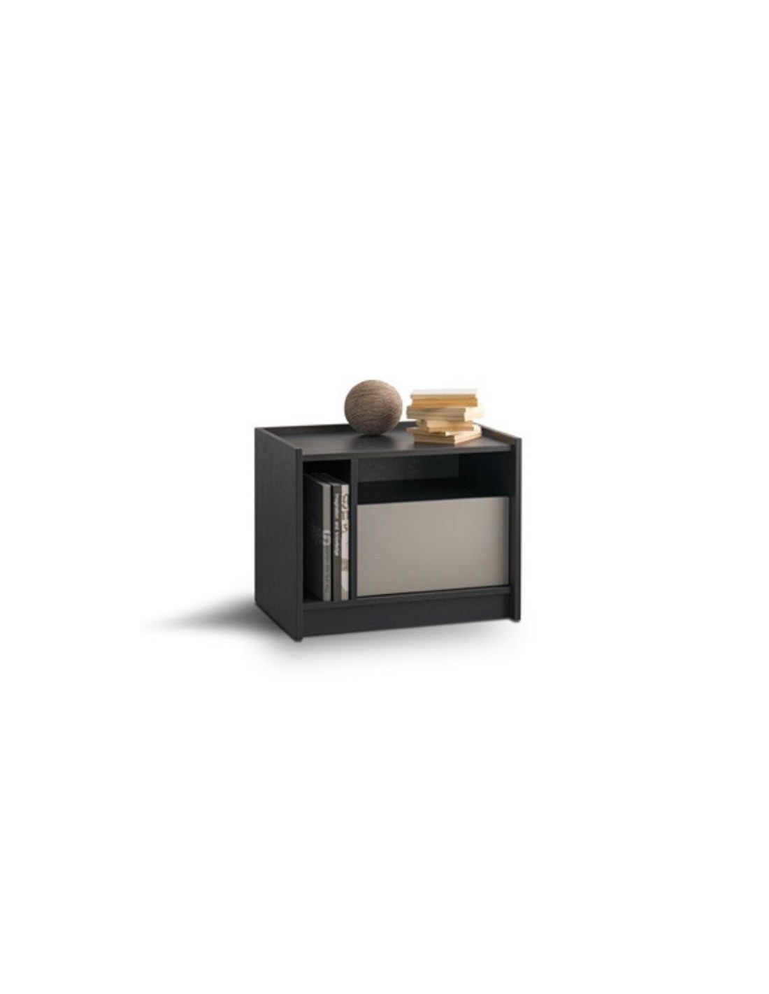 Bedside table with a storage, combined of wood and lacquer.