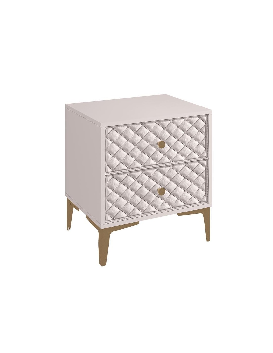 LANA Bedside 2-Drawers 50x40x60cm Ecru, front Quilted Pu