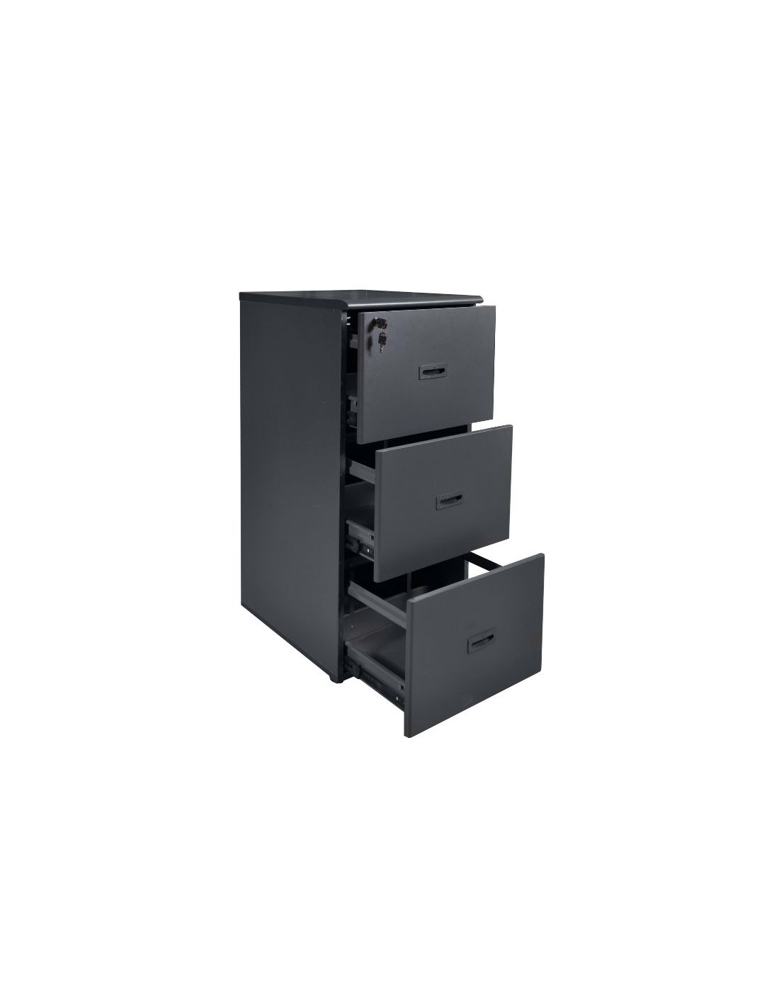 With three spacious drawers and a secure lock, this graphite-colored filing cabinet combines functionality and security.