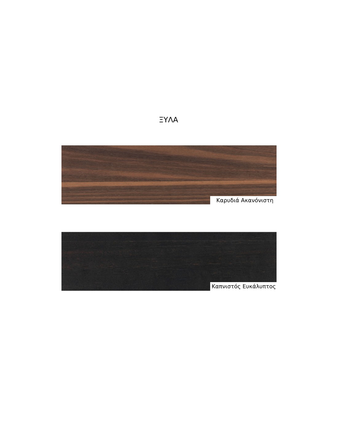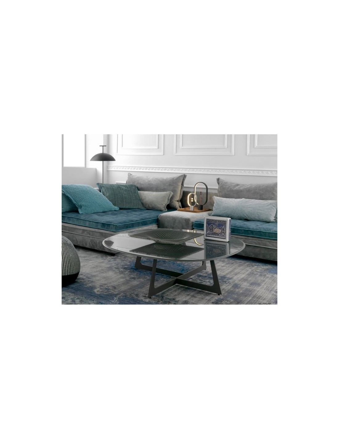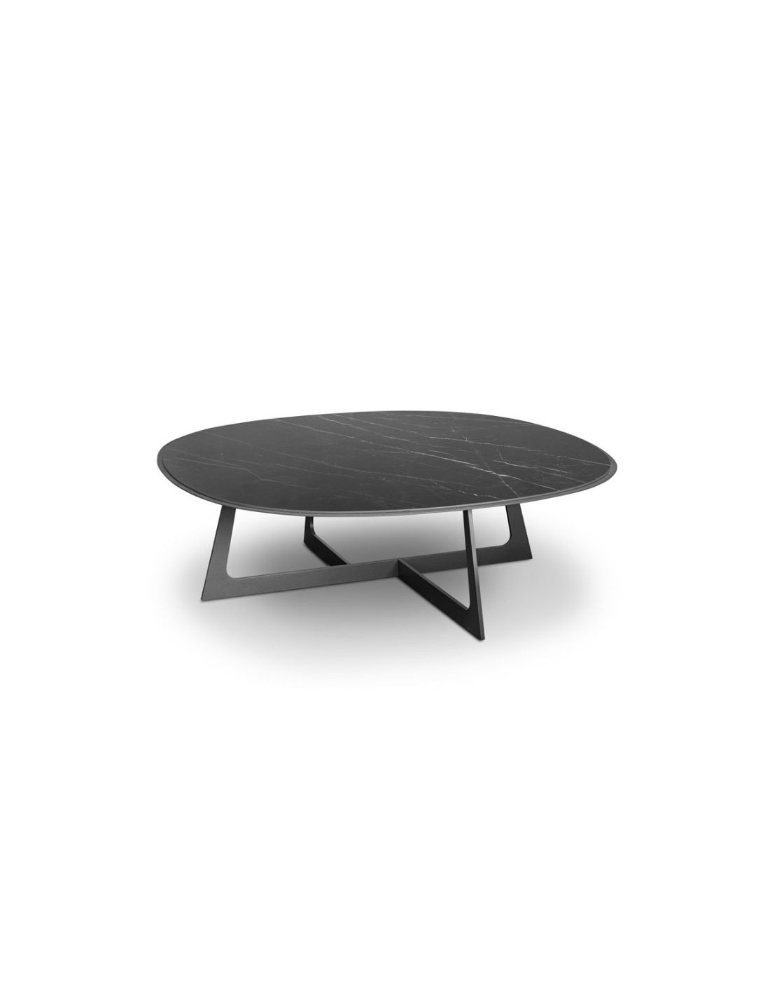 Coffee table consisting of a metal base and optional surfaces such as oak, walnut, smoked eucalyptus and ceramic marble.