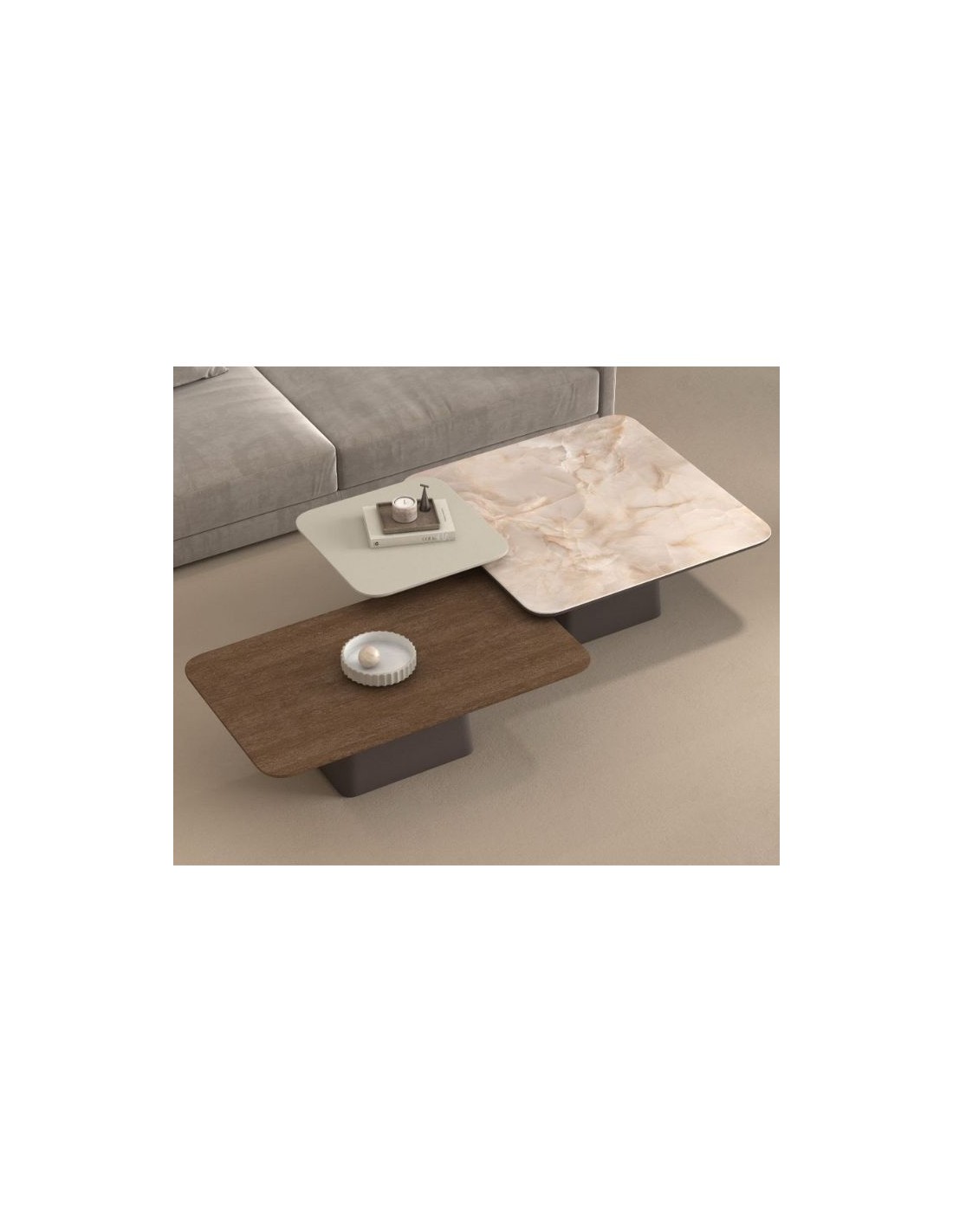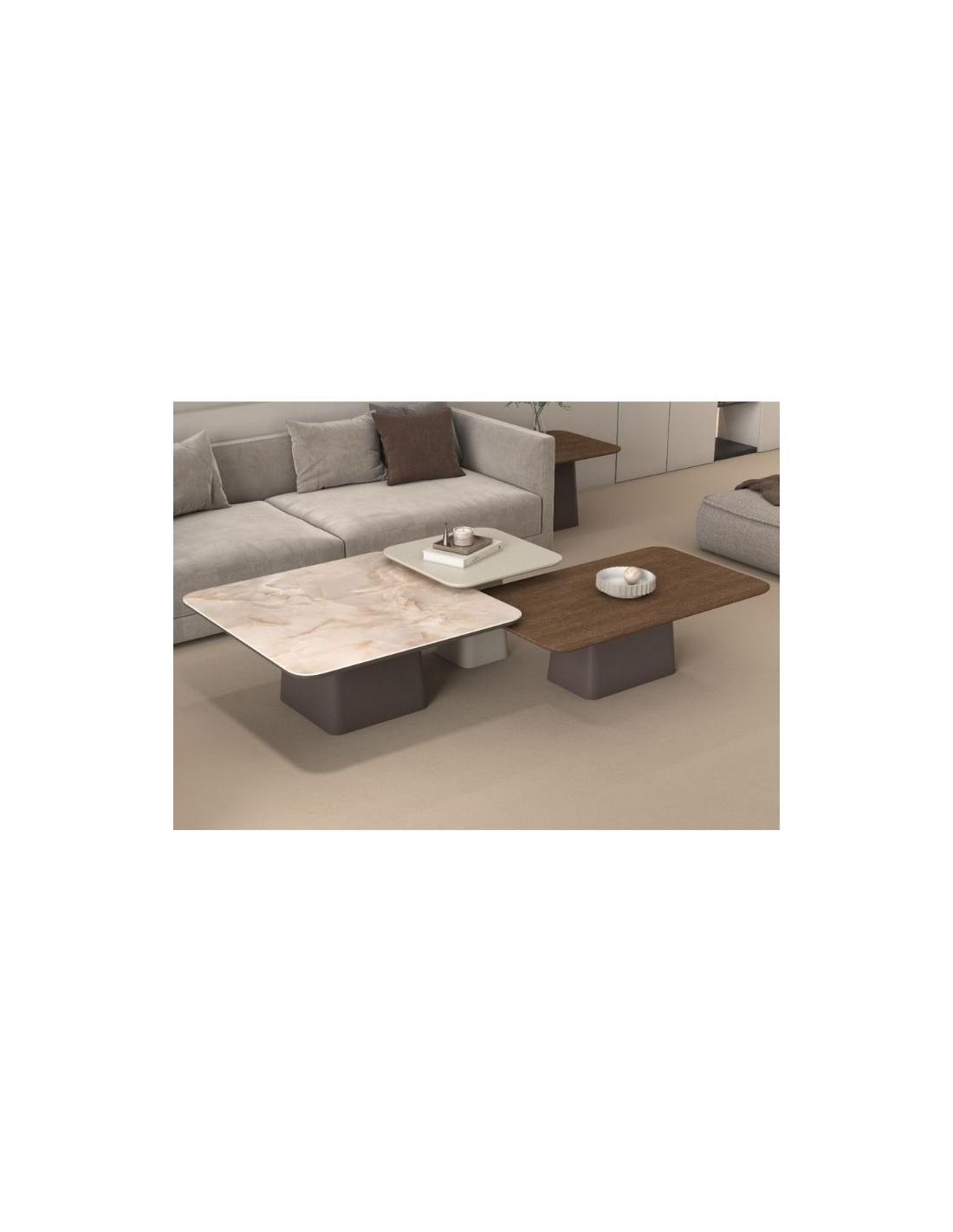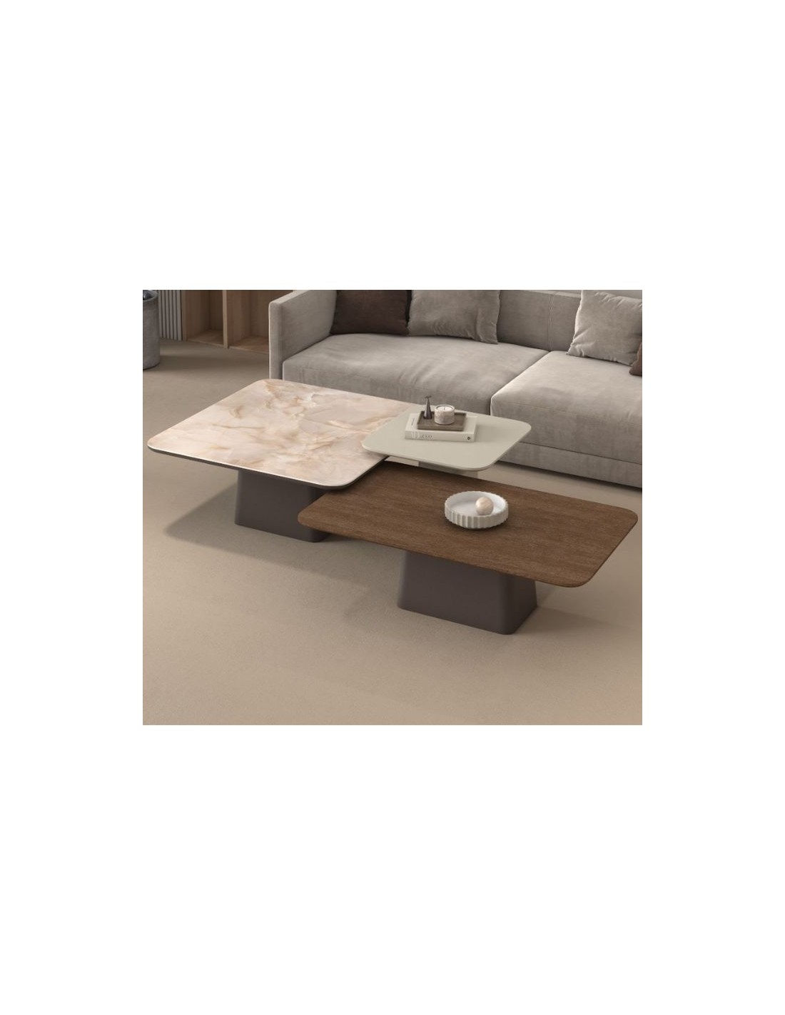 With a distinctive design that blends different surfaces, it offers a modern yet warm atmosphere to your living room.