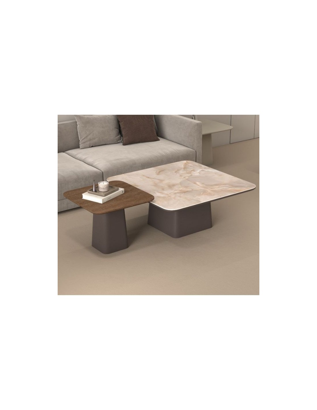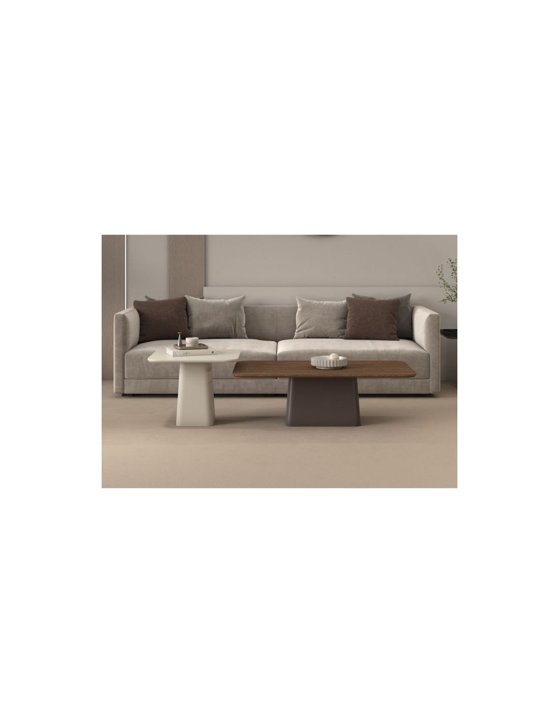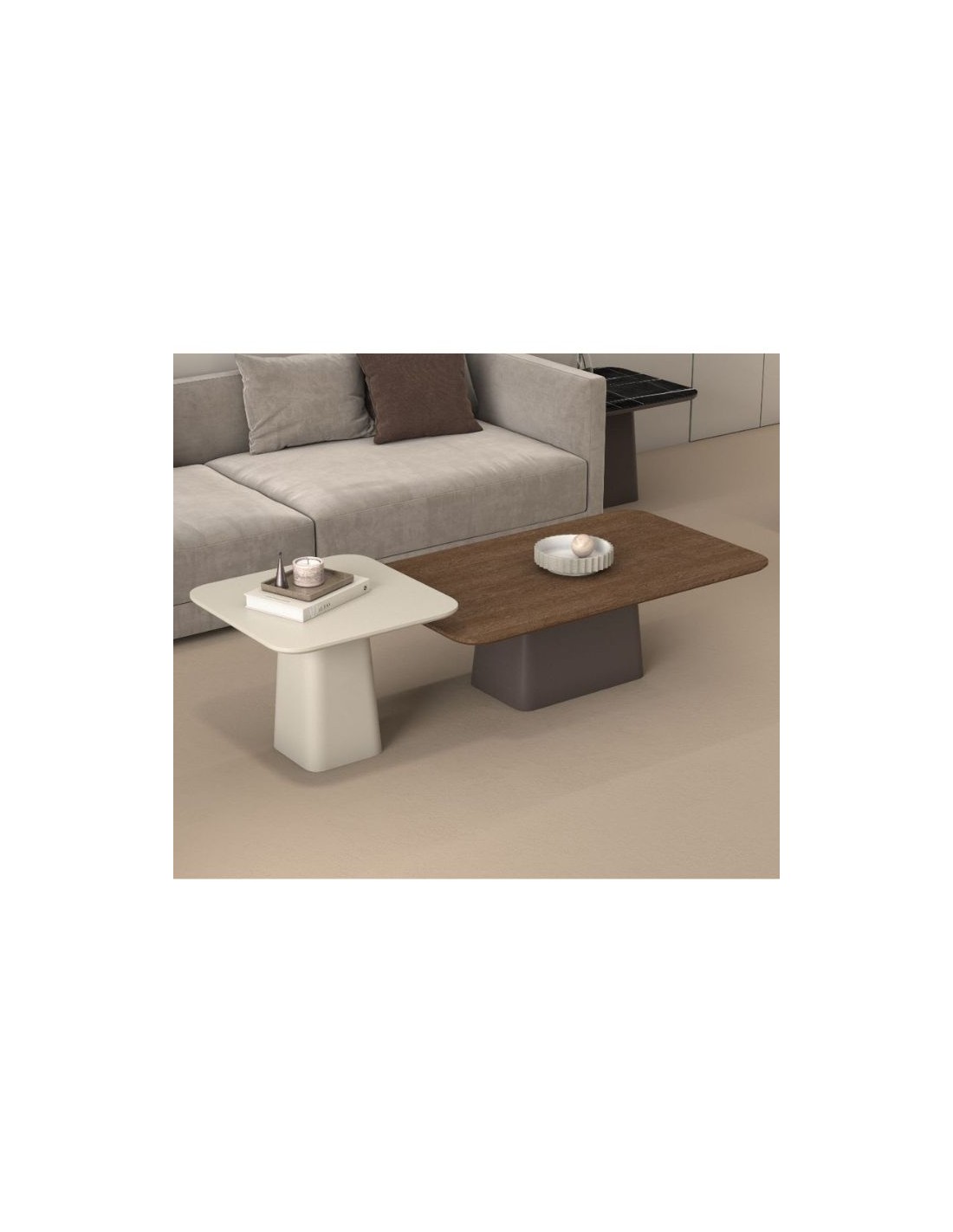 With a distinctive design that blends different surfaces, it offers a modern yet warm atmosphere to your living room.