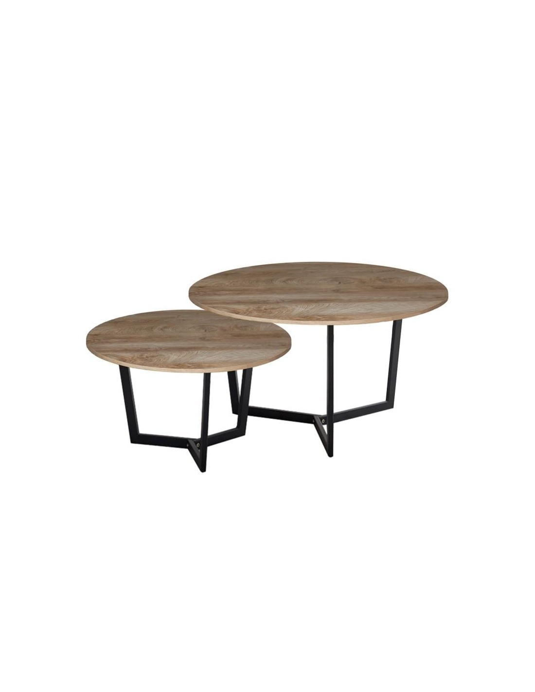 TEDDY Set-2 Coffee Tables D.80cm+D.60cm Metal Black-Walnut