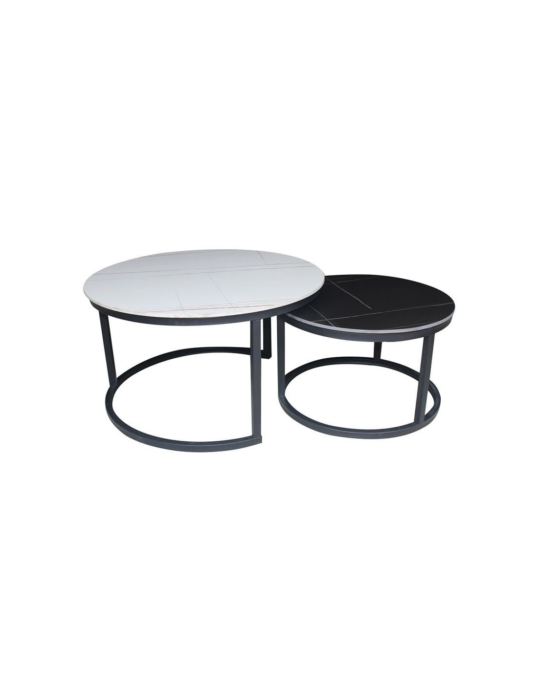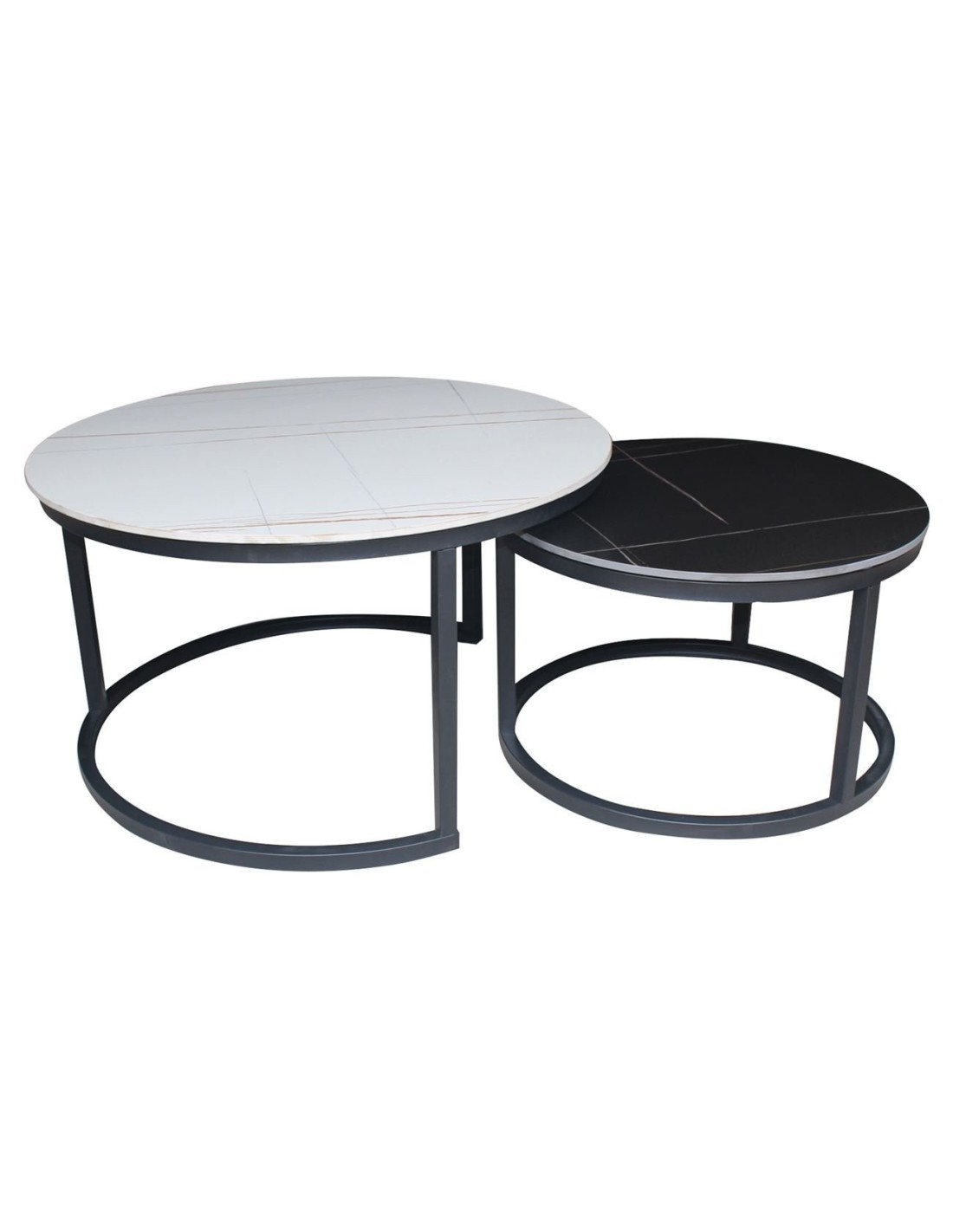 TERRY Set-2 Coffee Tables Metal Black-Sintered Stone D80+D60-White-Black Marble