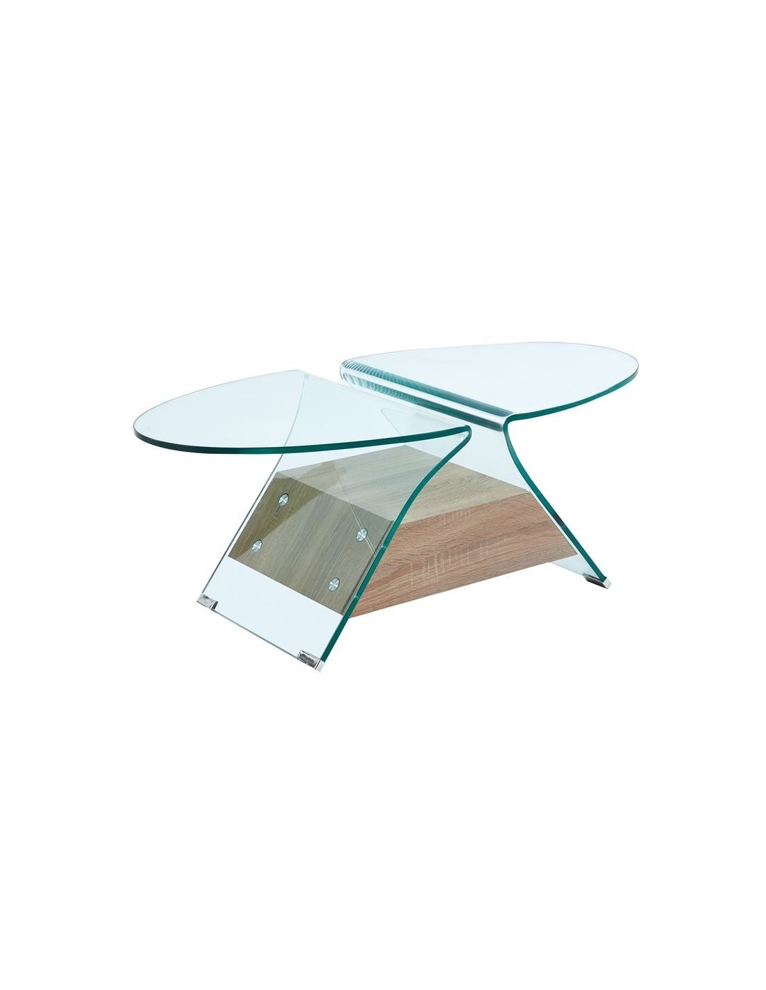 GLASSER Wood Oval Coffee Table Clear 12mm Glass-Sonoma 100x54x39cm