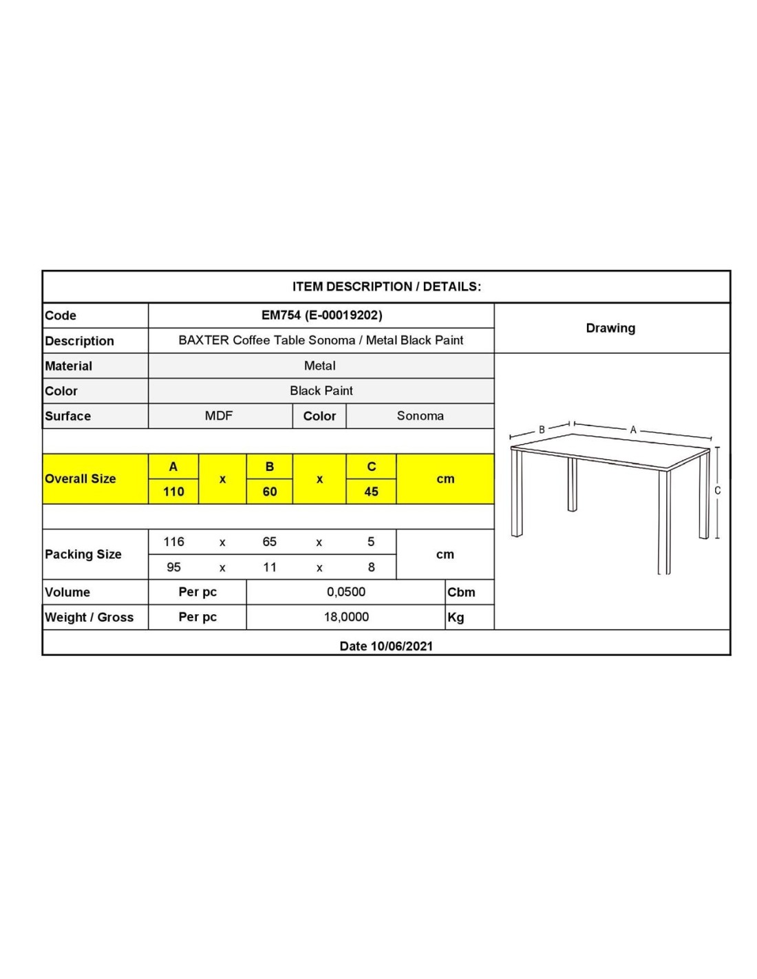 BAXTER Coffee Table 110x60cm Sonoma (Black Paint)