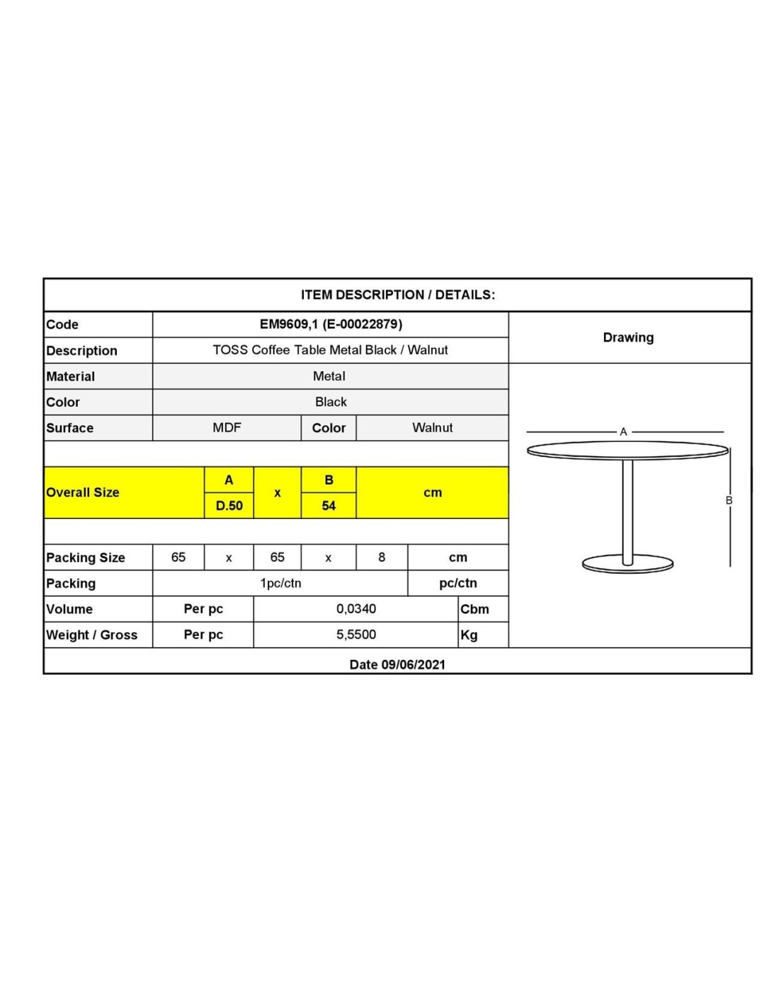 TOSS Coffee Table D.50 H.54cm Metal Black-Walnut