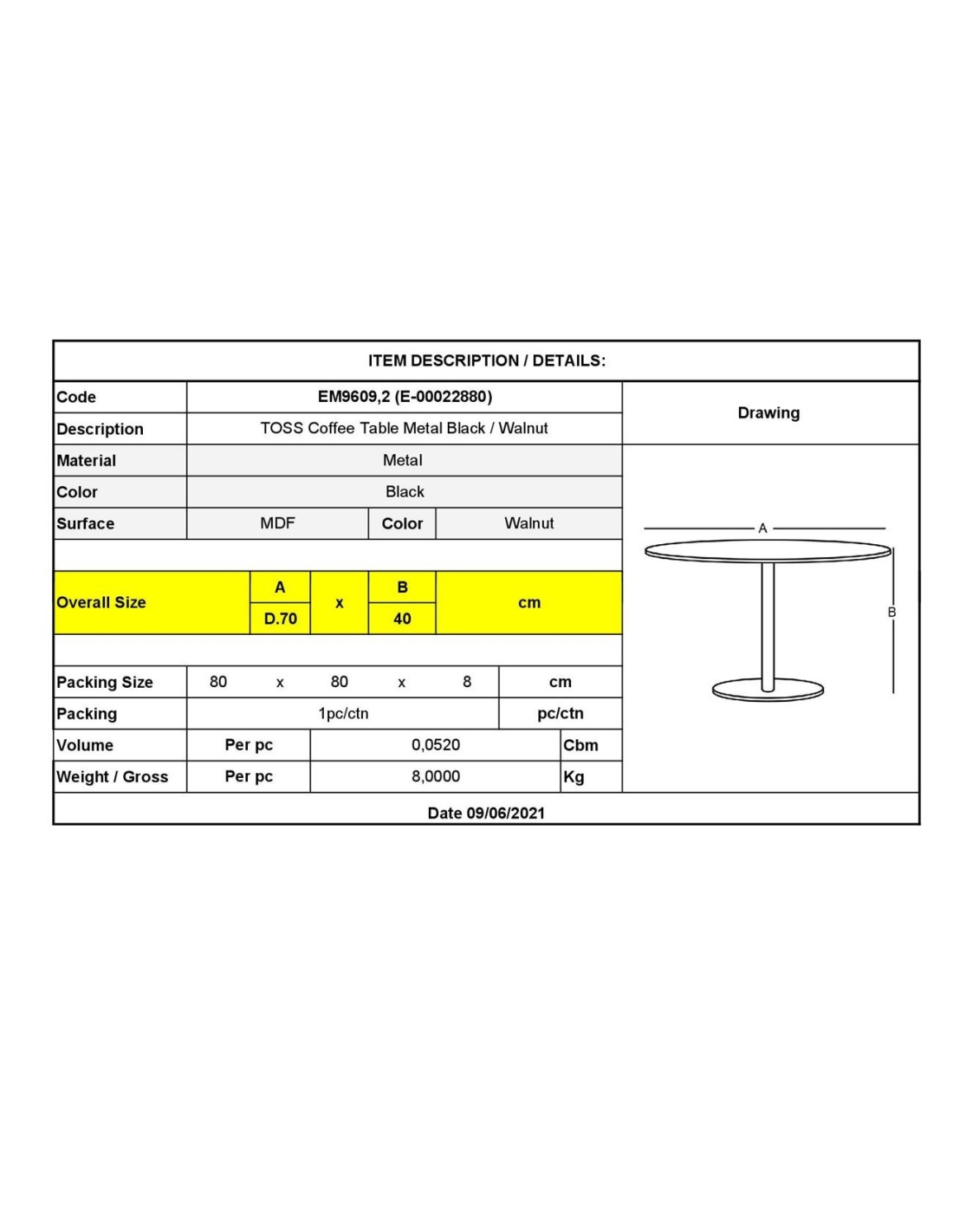 TOSS Coffee Table D.70 H.40cm Metal Black-Walnut