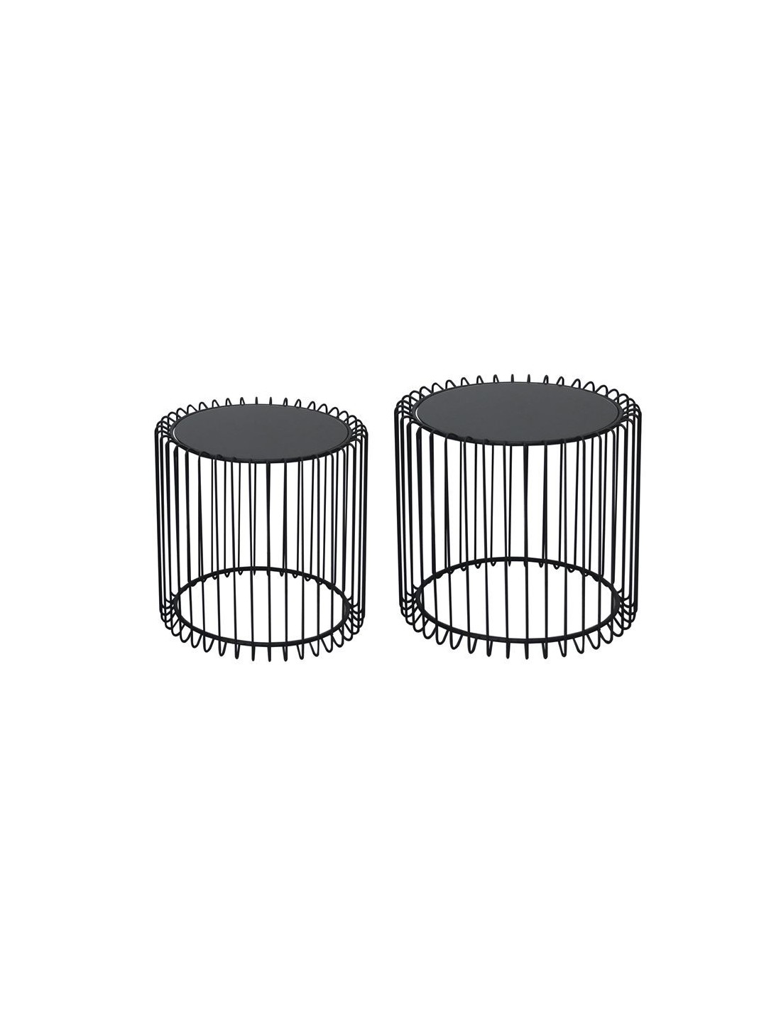 RICO Set-2pcs Coffee Tables D.45+D.50cm Metal Black-Glass Smoke