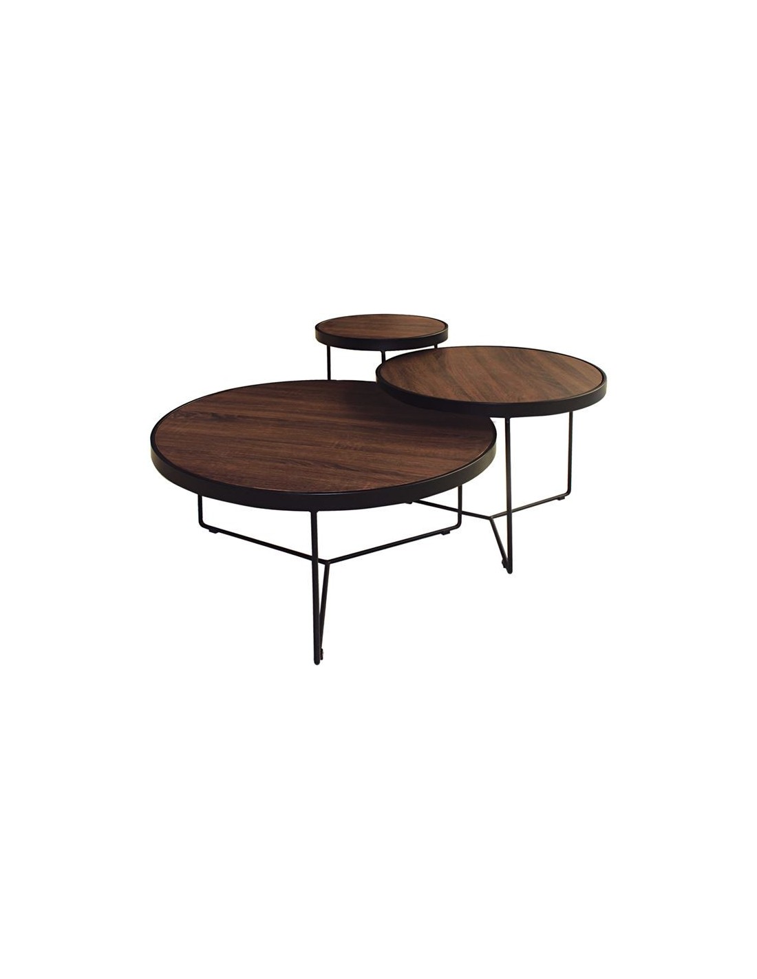 BOB Set-3 Coffee Tables Metal Black-Walnut