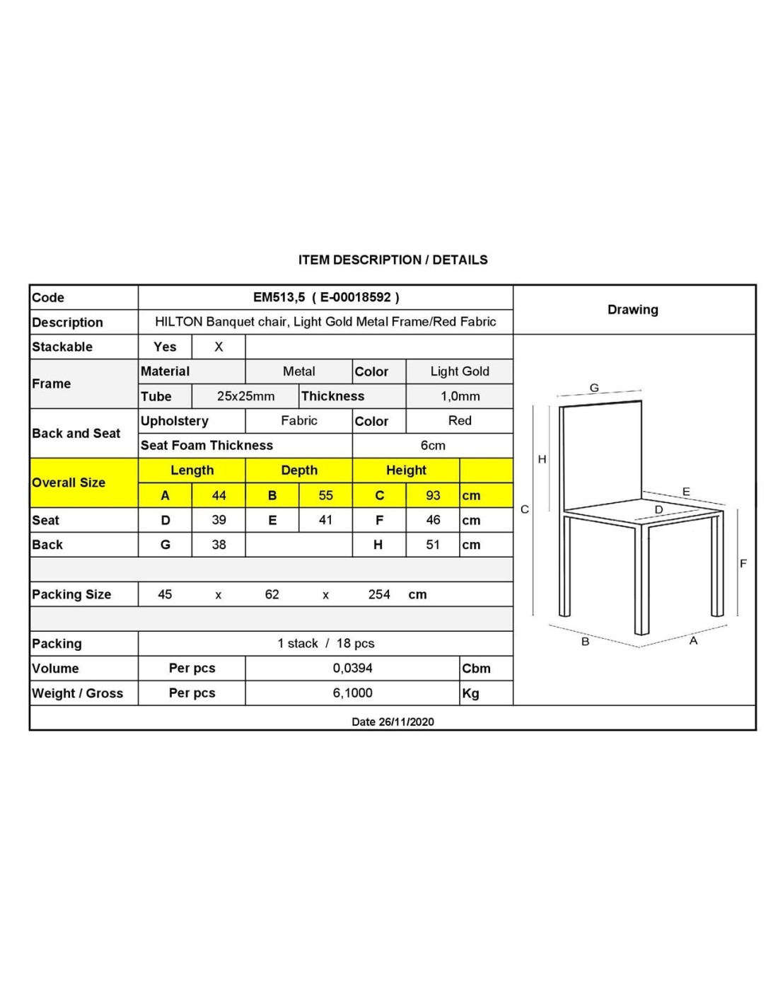HILTON Banquet chair-Light Gold Metal Frame-Red Fabric