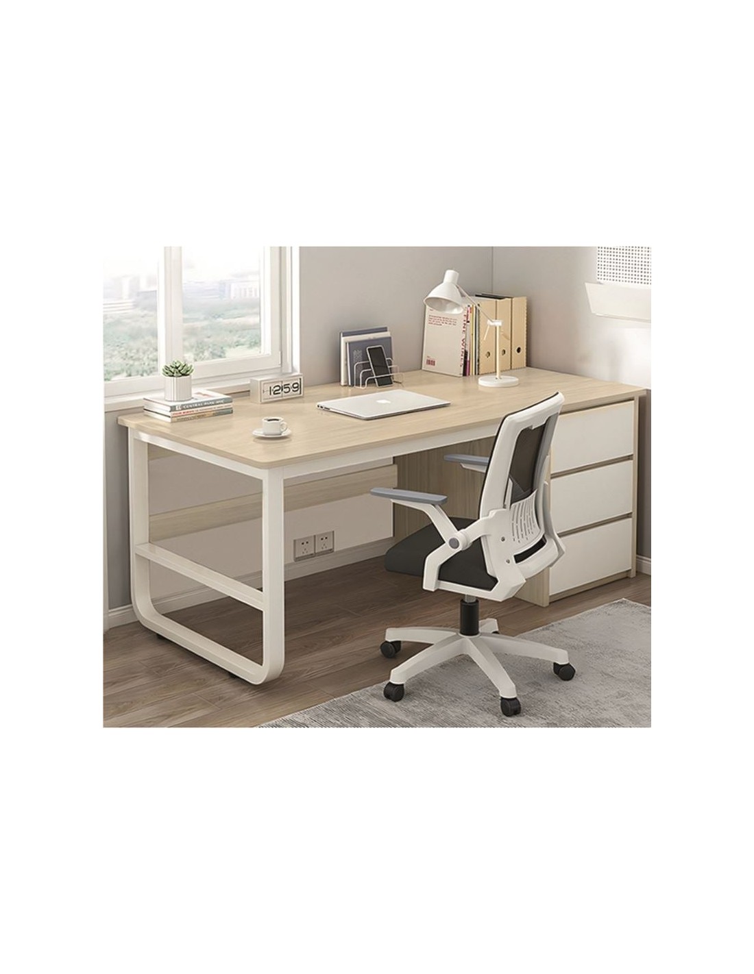 PC Metal Desk (3 drawers) 120x48x74cm White-Natural