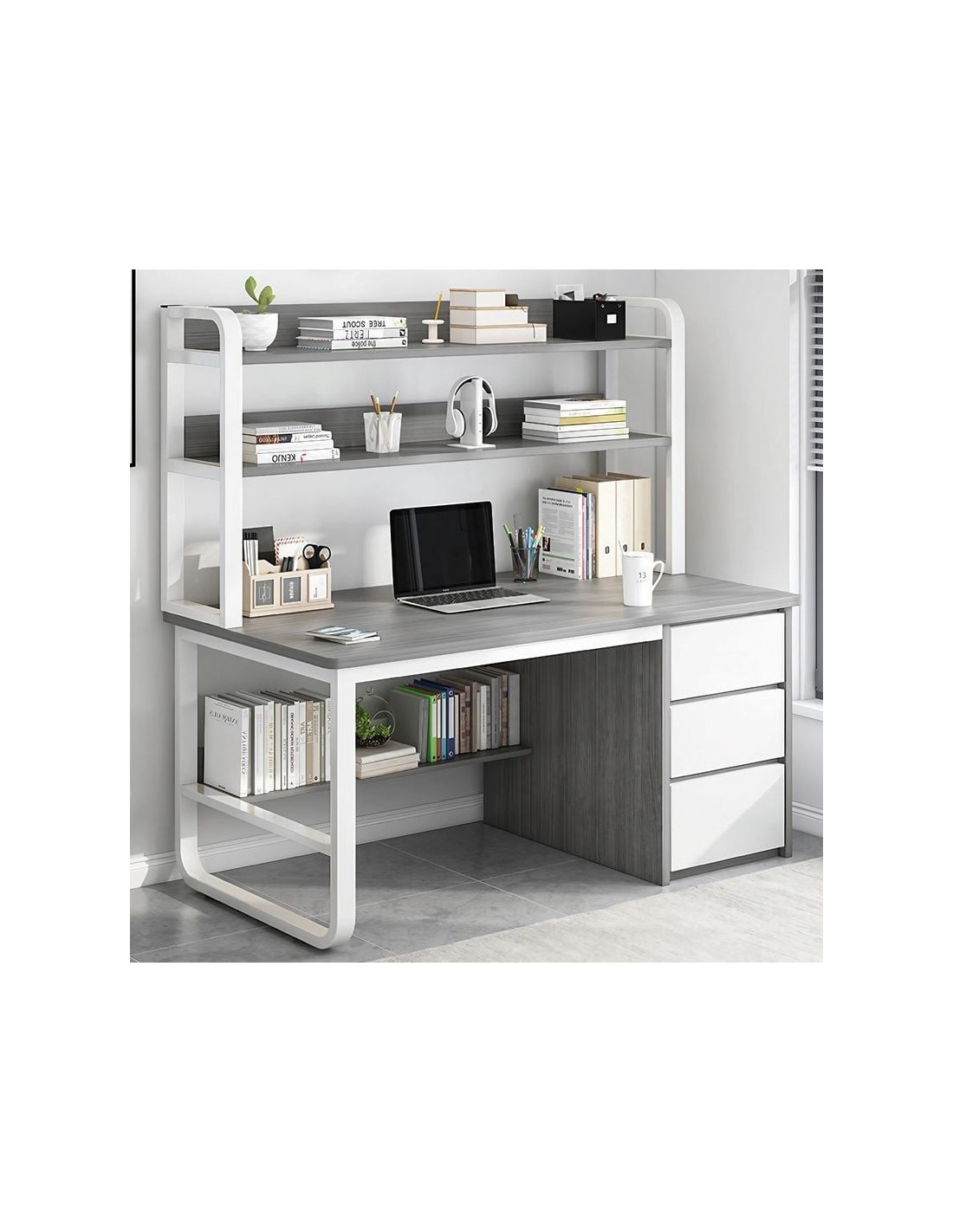 PC Metal Desk 3 Drawers-3 Shelves 120x50x74-147cm White-Grey