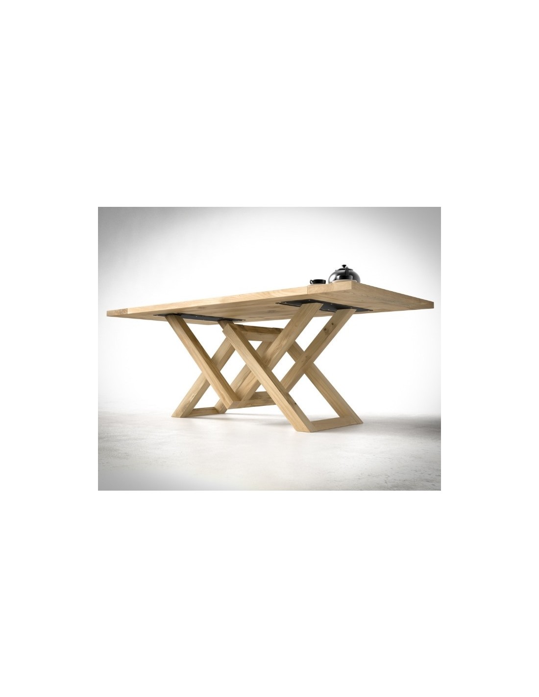 Sturdiness and solid sense are attained through solid wood and oaken texture, that characterise the QUEEN dining table, from its top surface to its base.