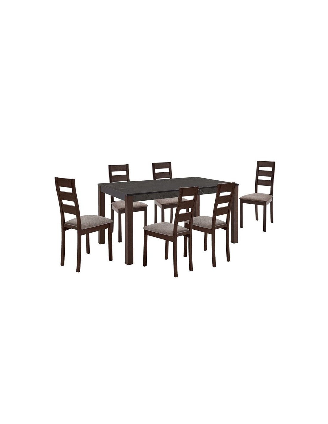 SIENNA Set (1+6) Dark Walnut-Fabric Camel-Melamine Greystone