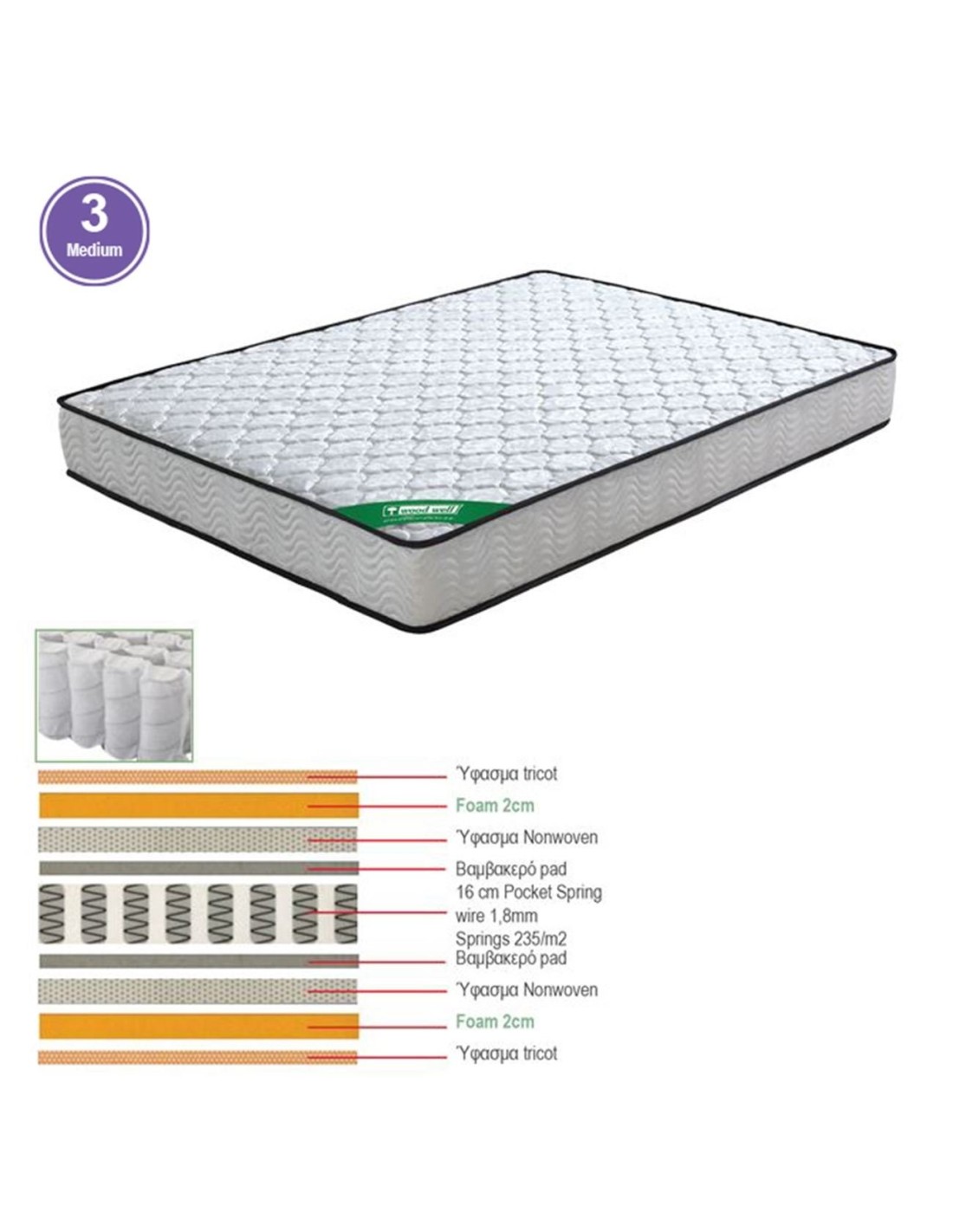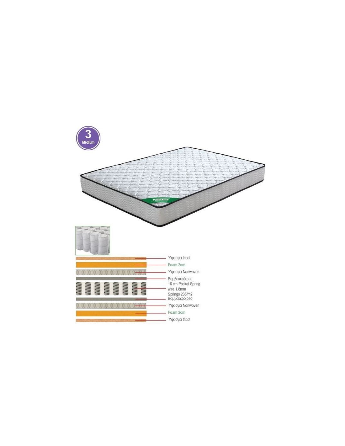 MATTRESS Pocket Spring 90x200-20cm (2-side)