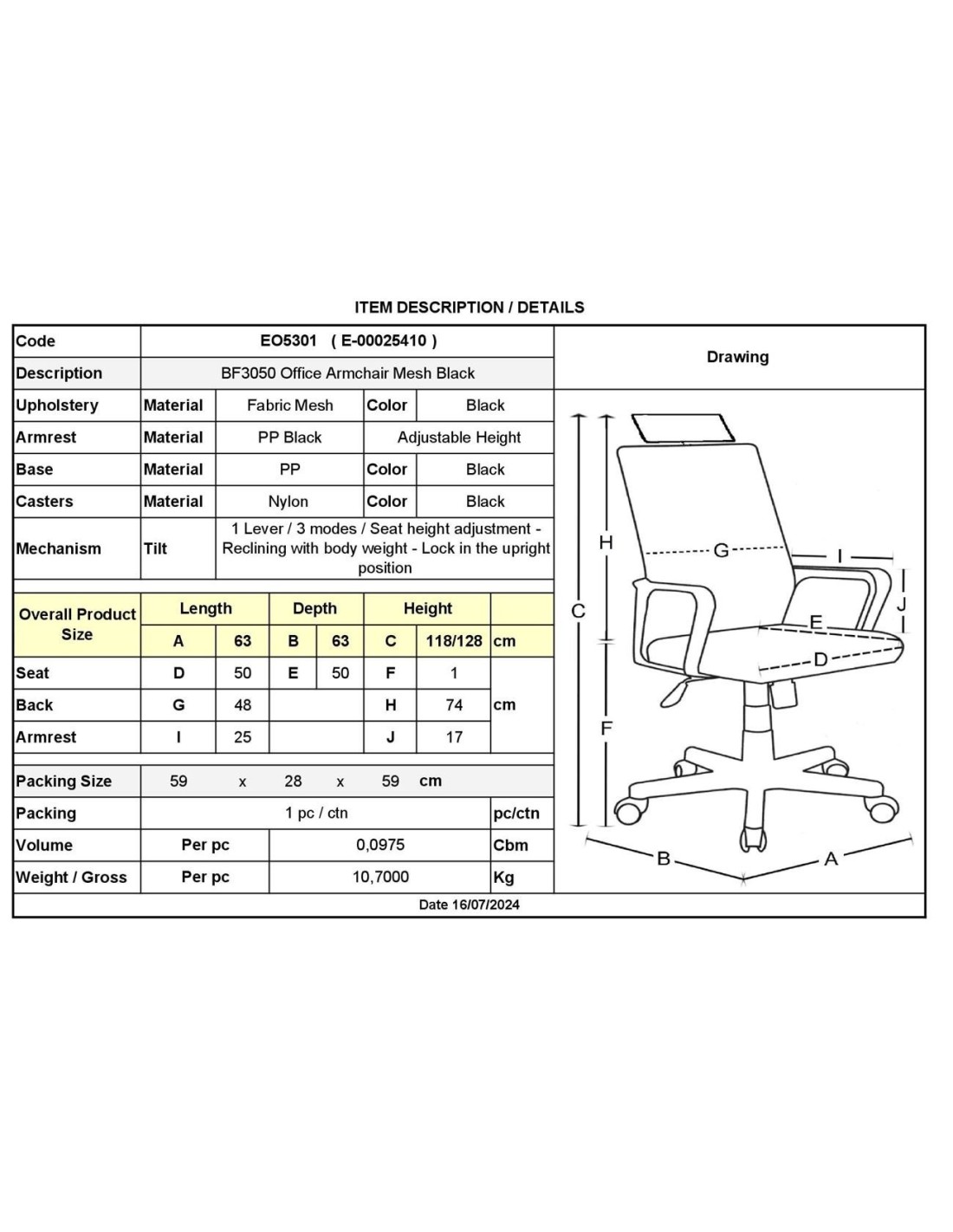 Mechanism Tilt : 1 Lever / 3 modes