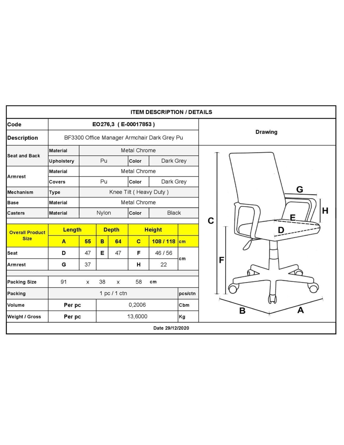 BF3300 Manager Armchair Dark Grey Pu