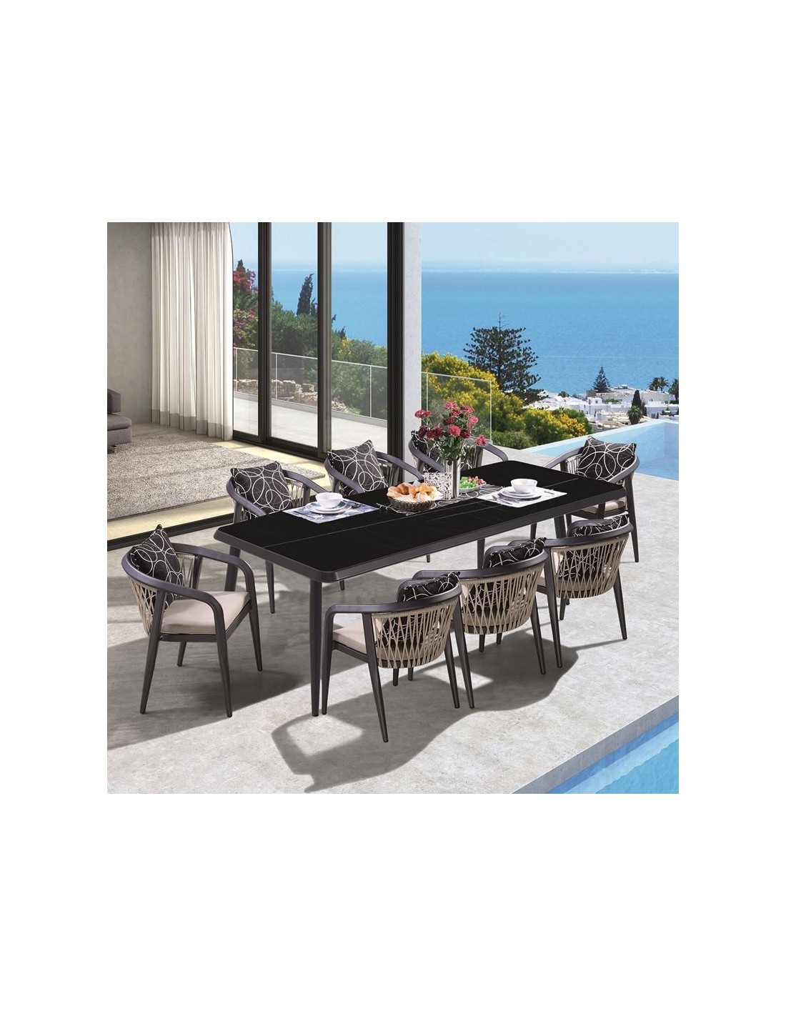 JARDIN Set Alu (Table 220x100cm+8 Armchairs) Anthracite-Cushions Beige-Dark grey