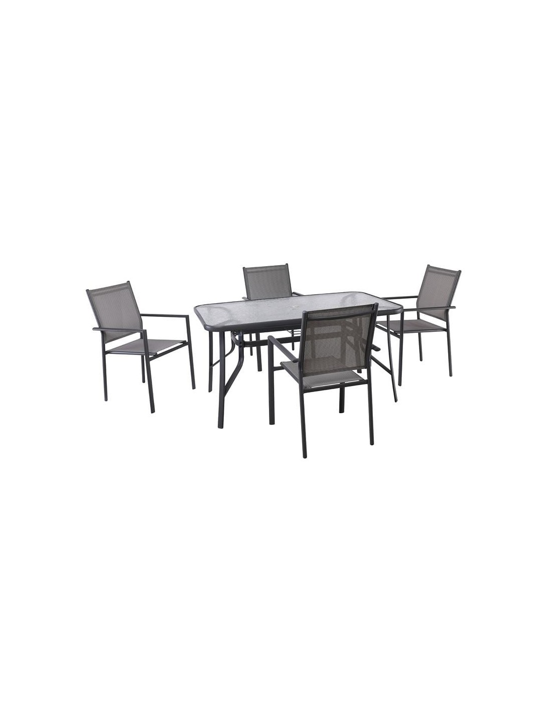 LANSON Set (Table 120x70+4 Armchairs) Metal Dark Grey-Textilene Grey