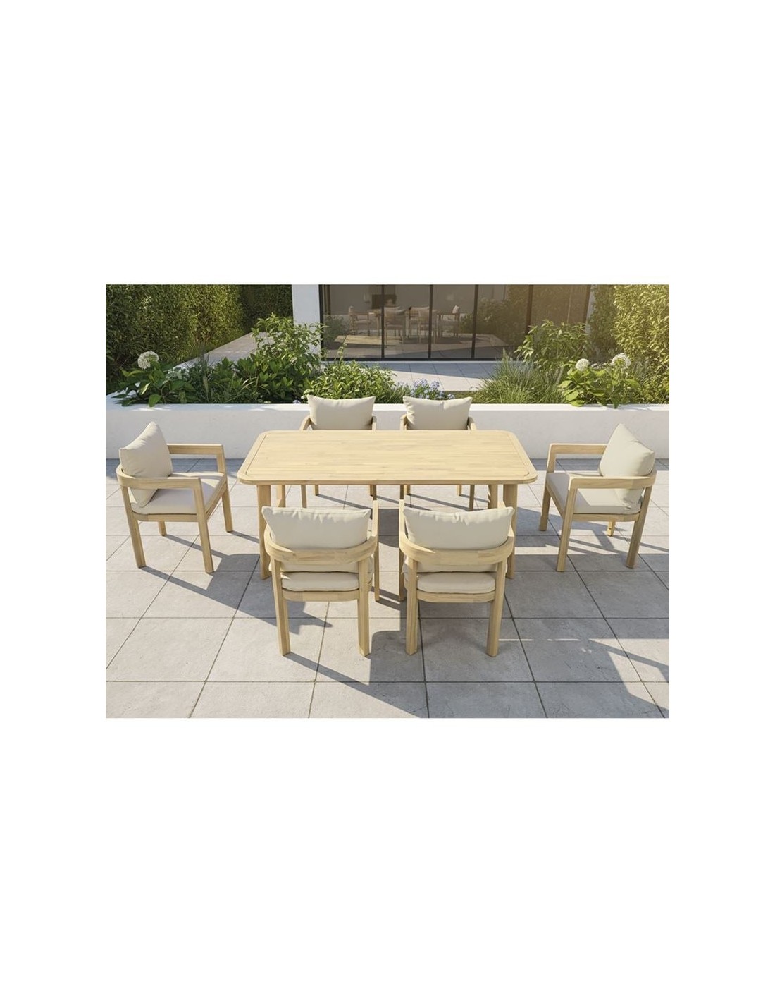 FLORIDA Dining Set (Table 180x90cm+6 Armchairs) Acacia, Cushions Beige