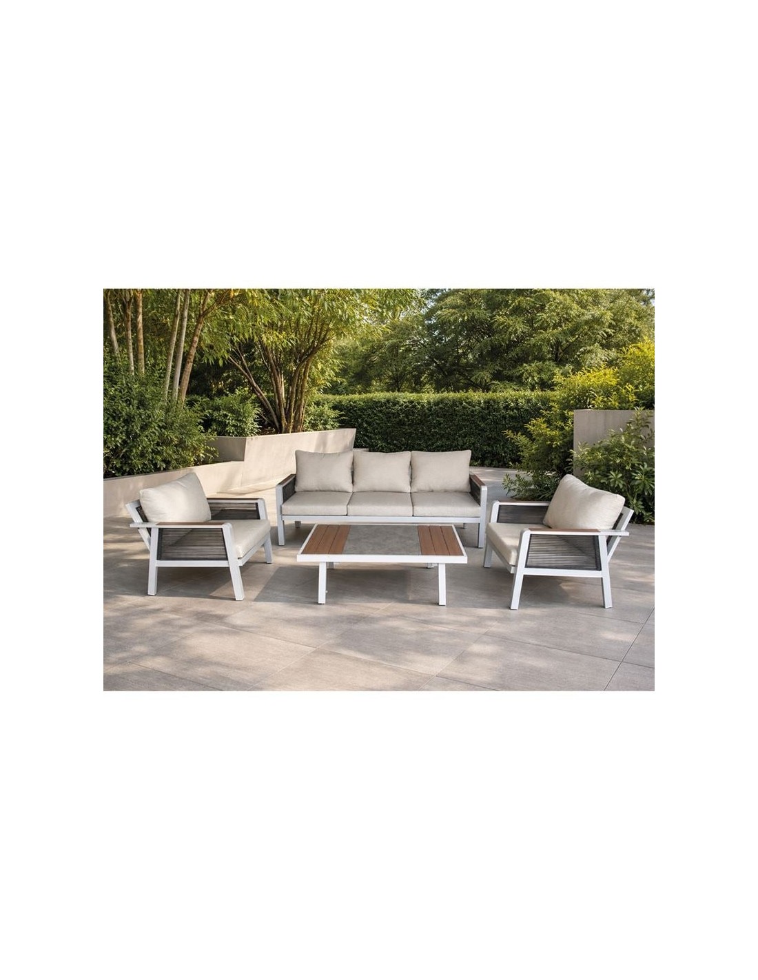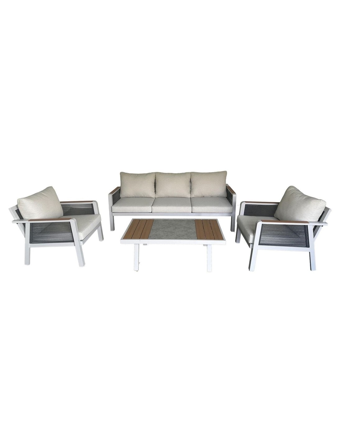 TORO Set (4pcs) Alu White-Rope Wicker Anthracite-Polywood Narural (Cushion Ecru)