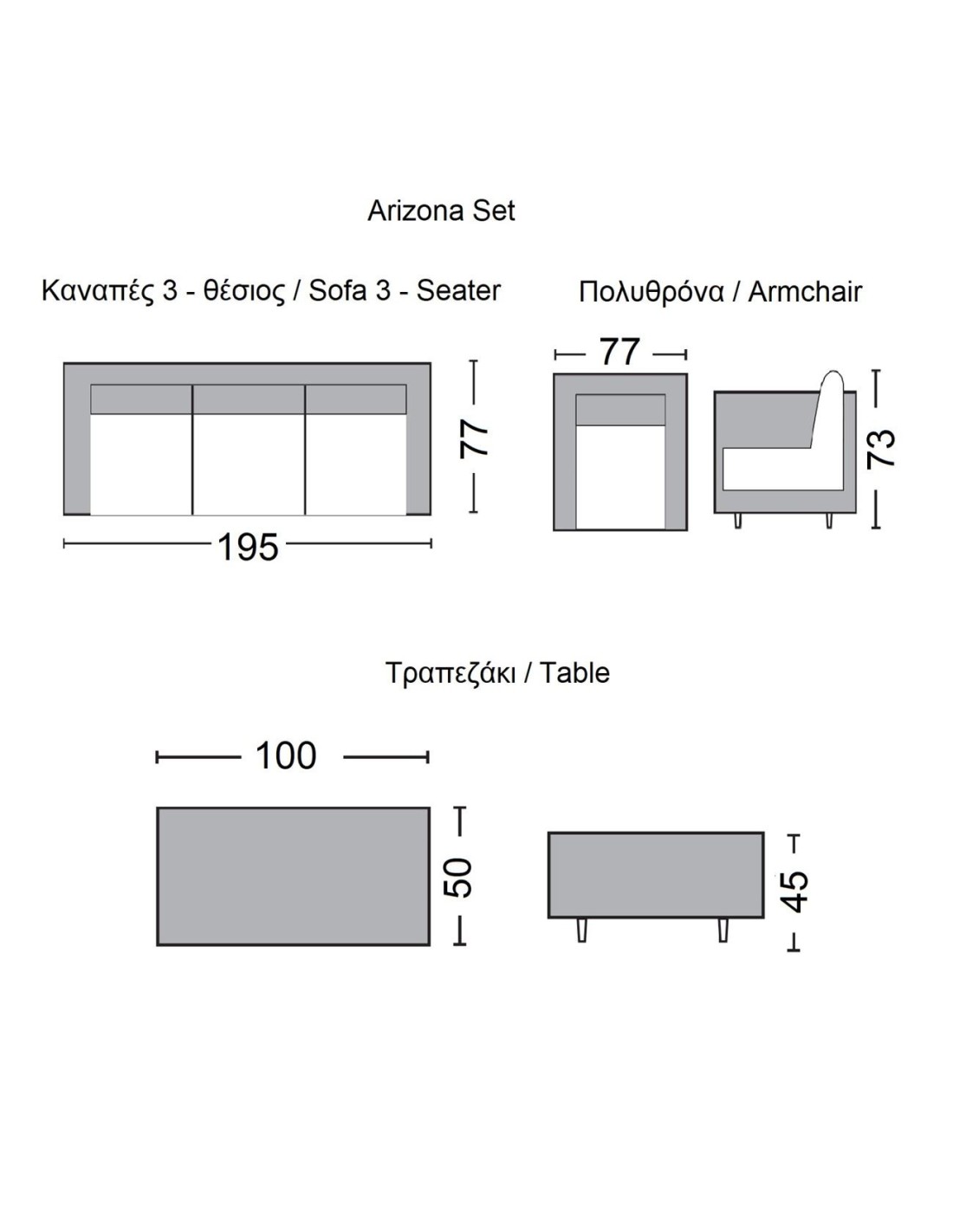 ARIZONA Set-3s Grey-Brown Wicker (Cushions Anthracite)