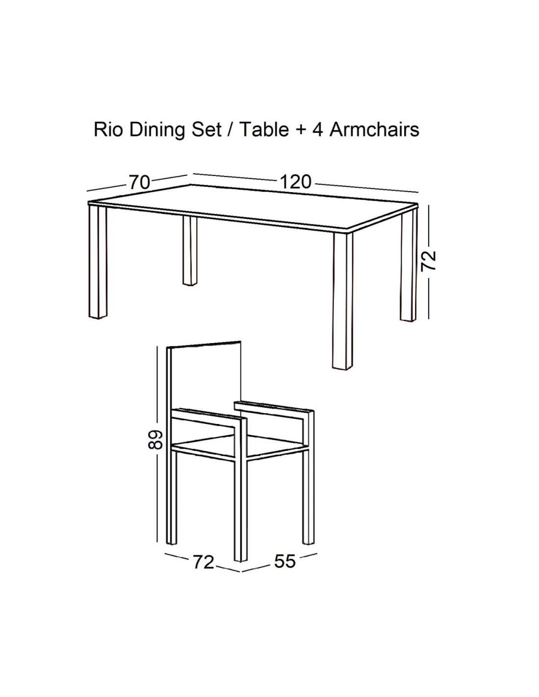 RIO Set (Table 120x70+4 Armchairs) Steel Brown-Textilene Brown