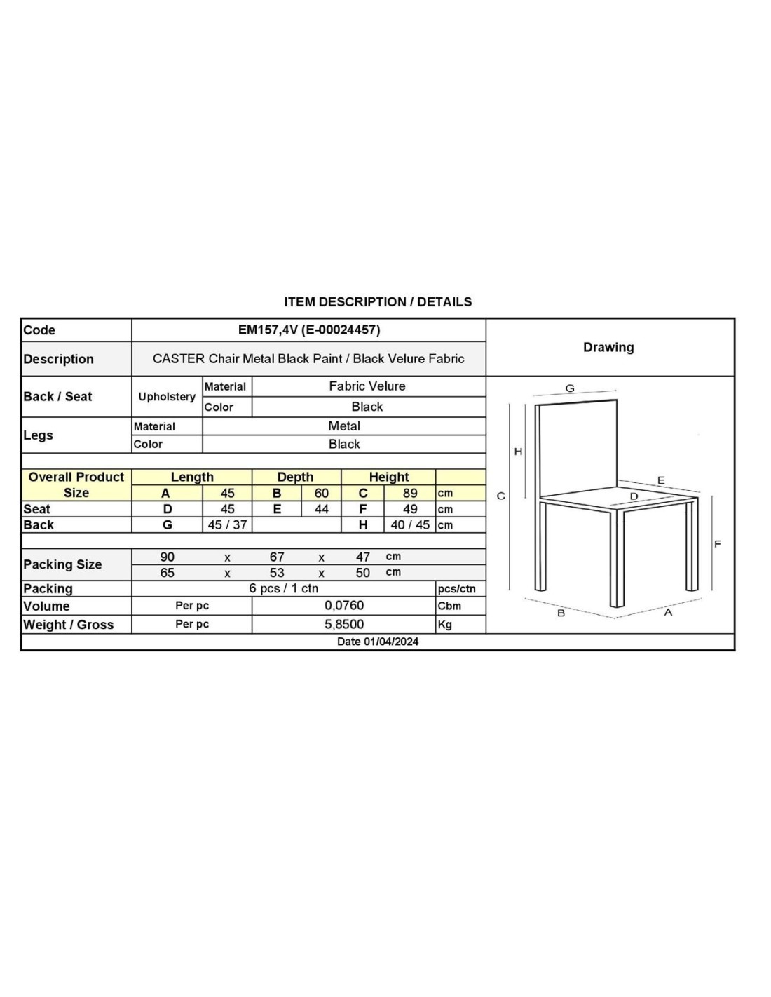 CASTER Chair Metal Black Paint-Black Velure Fabric