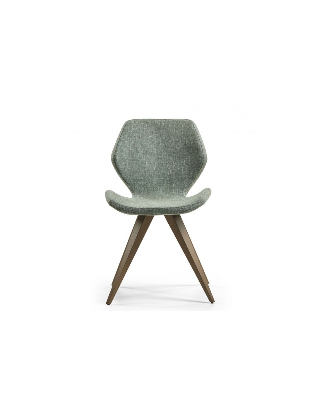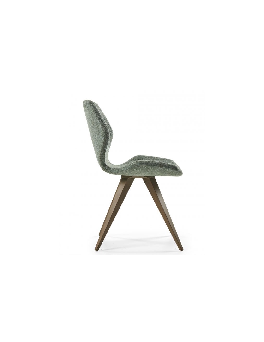 A chair upholstered with fabric.