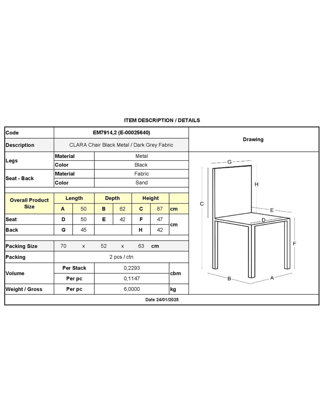 CLARA Chair Black Metal-Sand Fabric