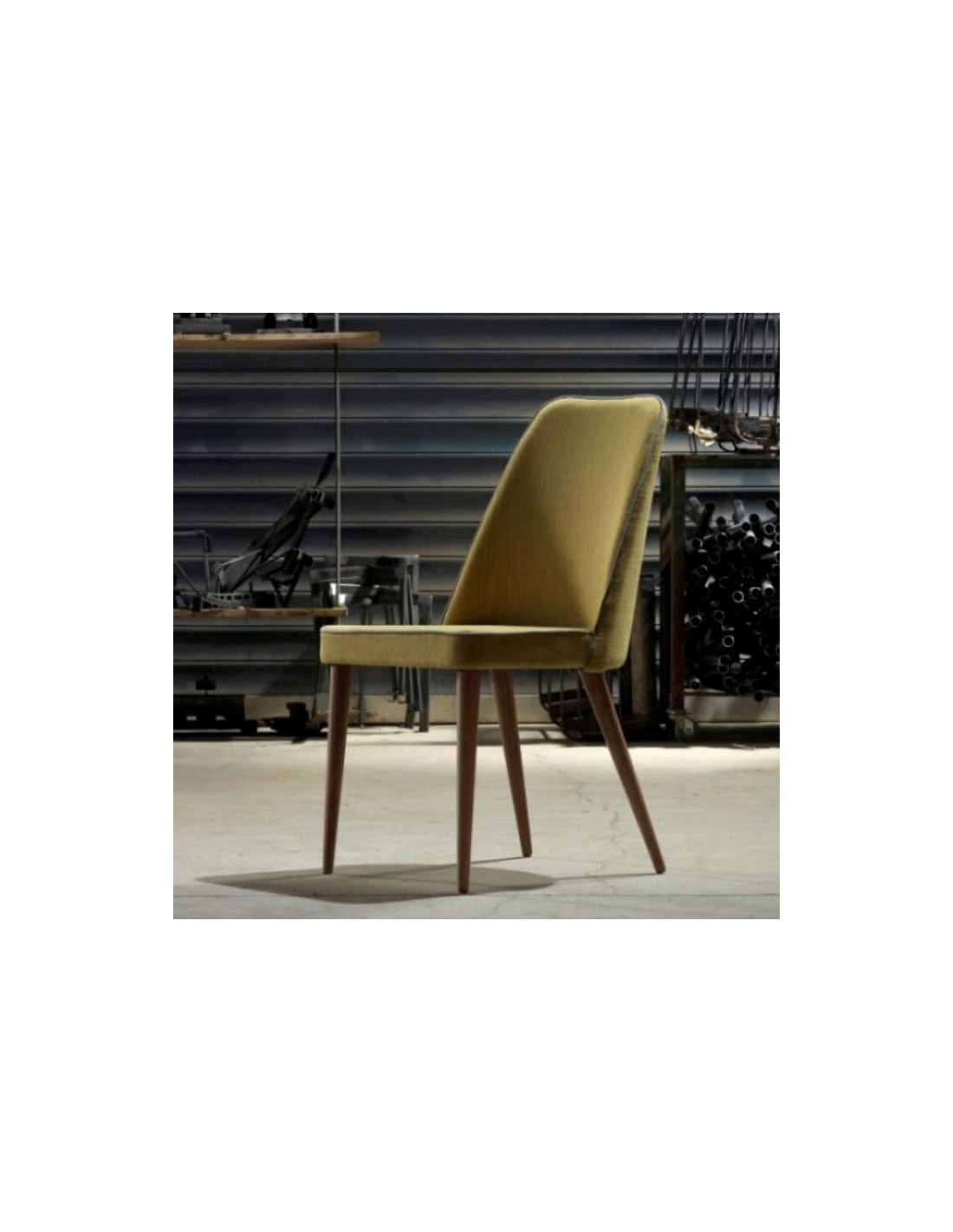 An armchair with backrest and seat made of moulding polyurethane foam and wooden legs.