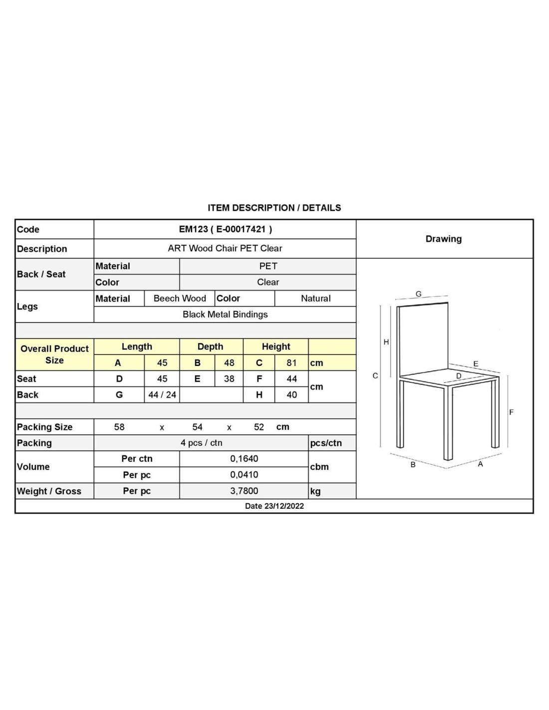 ART Wood Chair PET Clear