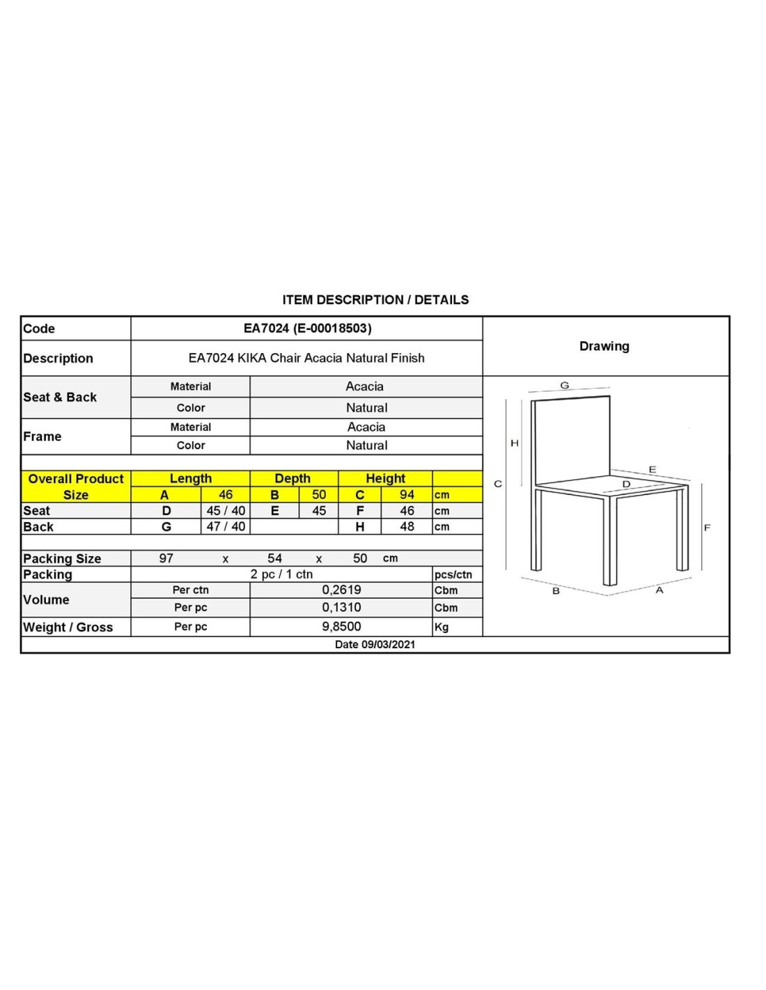 KIKA Chair Acacia Natural Finish