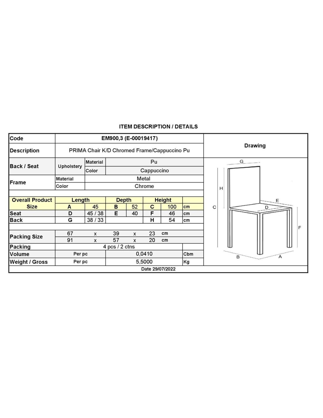 PRIMA Chair K-D Chromed Frame-Cappuccino Pu