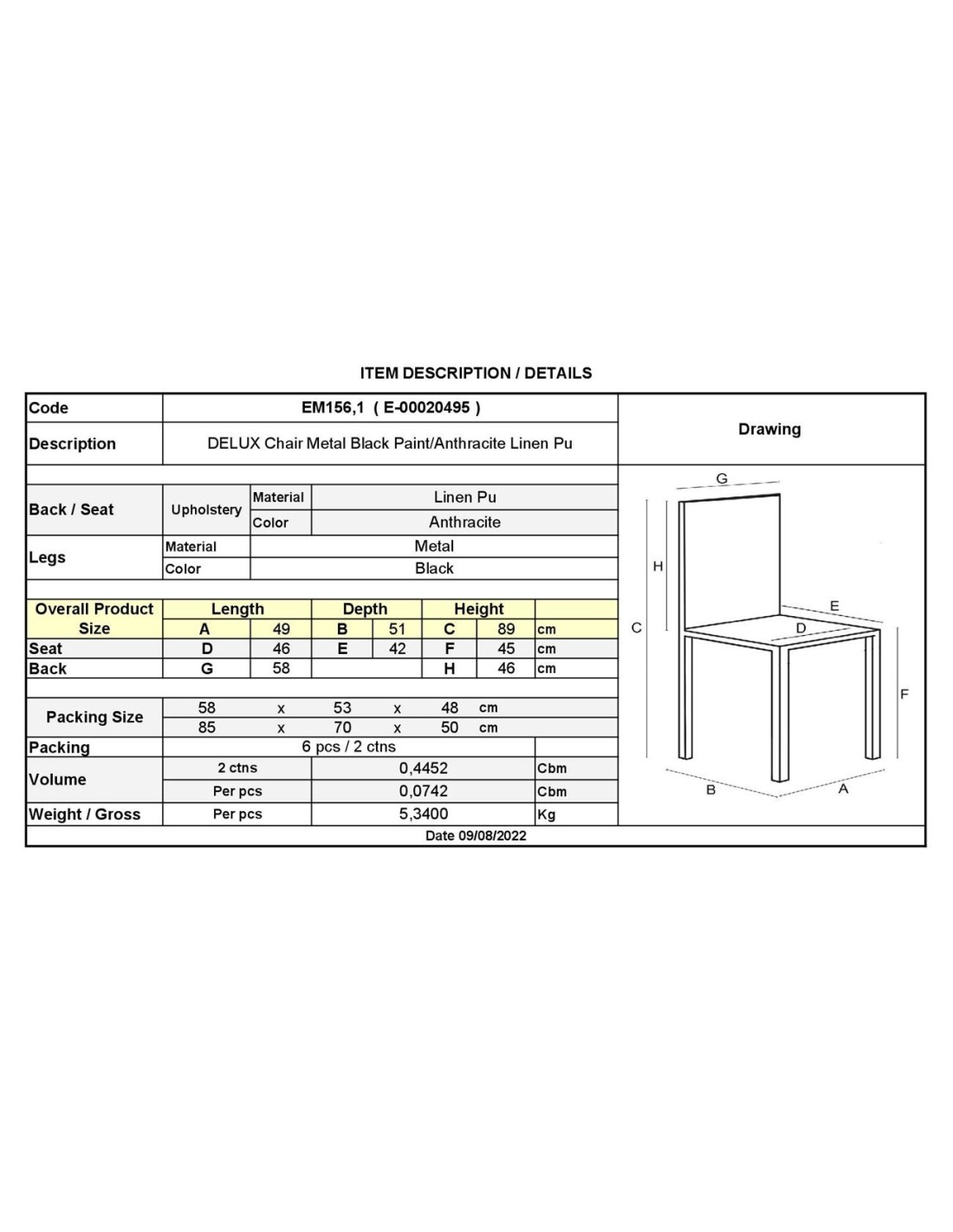 DELUX Chair Metal Black Paint-Anthracite Linen Pu