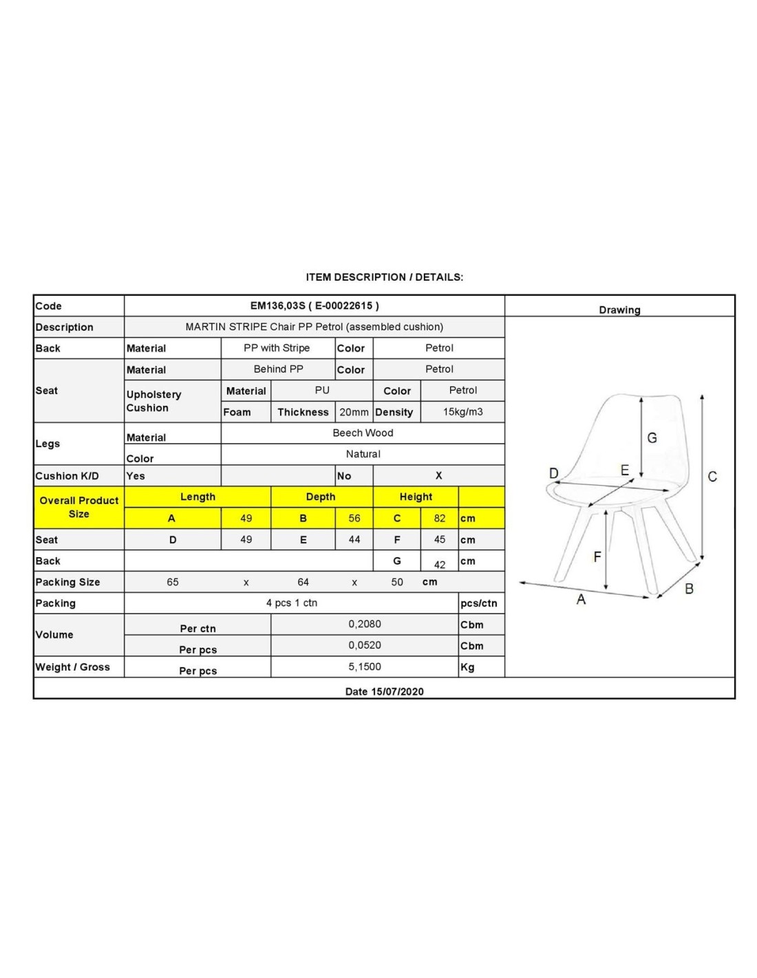 MARTIN STRIPE Chair PP Petrol (assembled cushion)