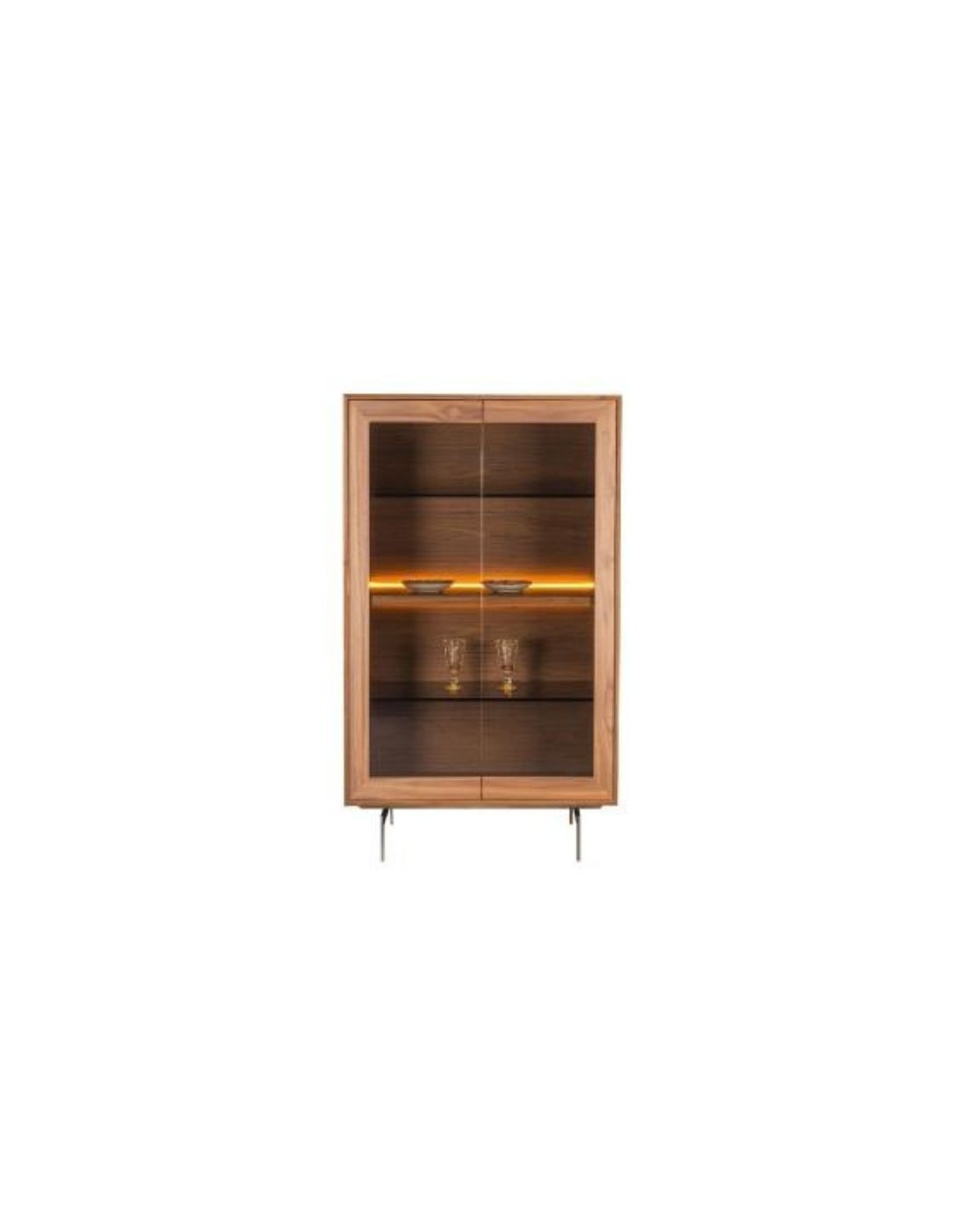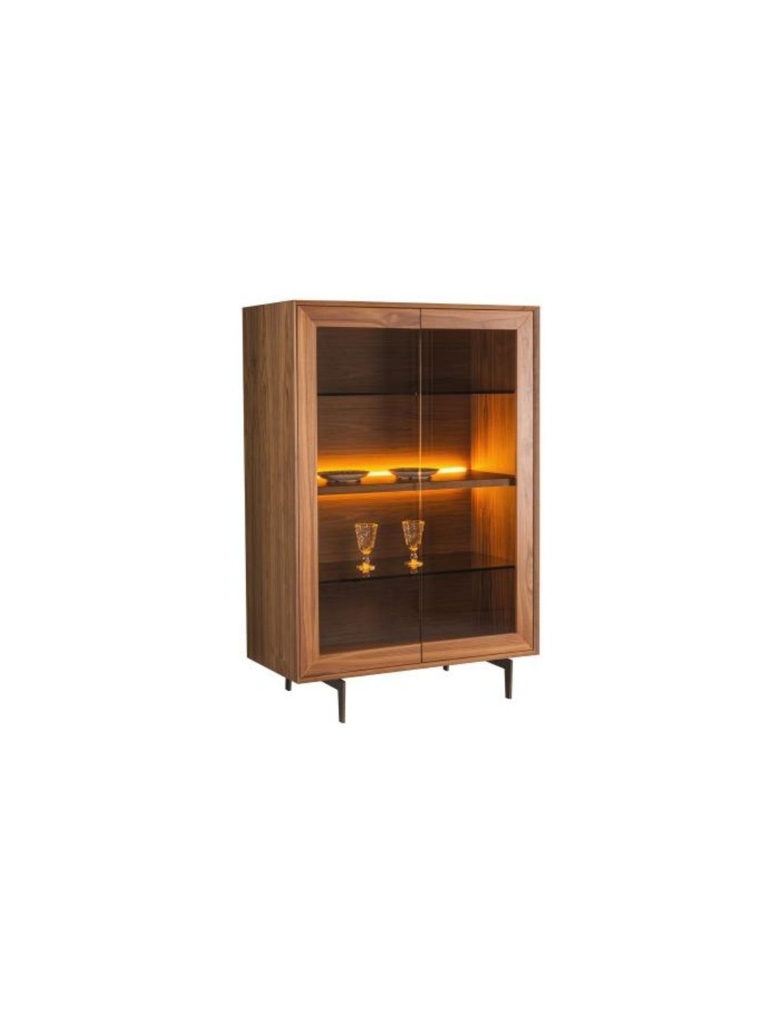 Includes 2 push-pull glass doors and 1 shelf in veneer wood or lacquer with led lighting and 2 glass shelves.