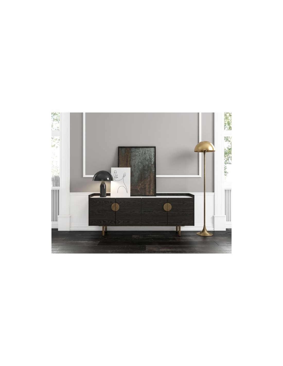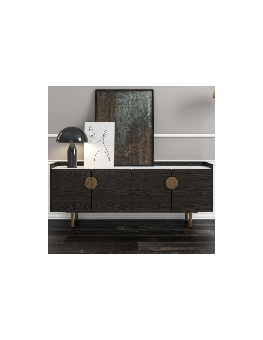 Wooden Sideboard Portofino with metal base and custom made handles.