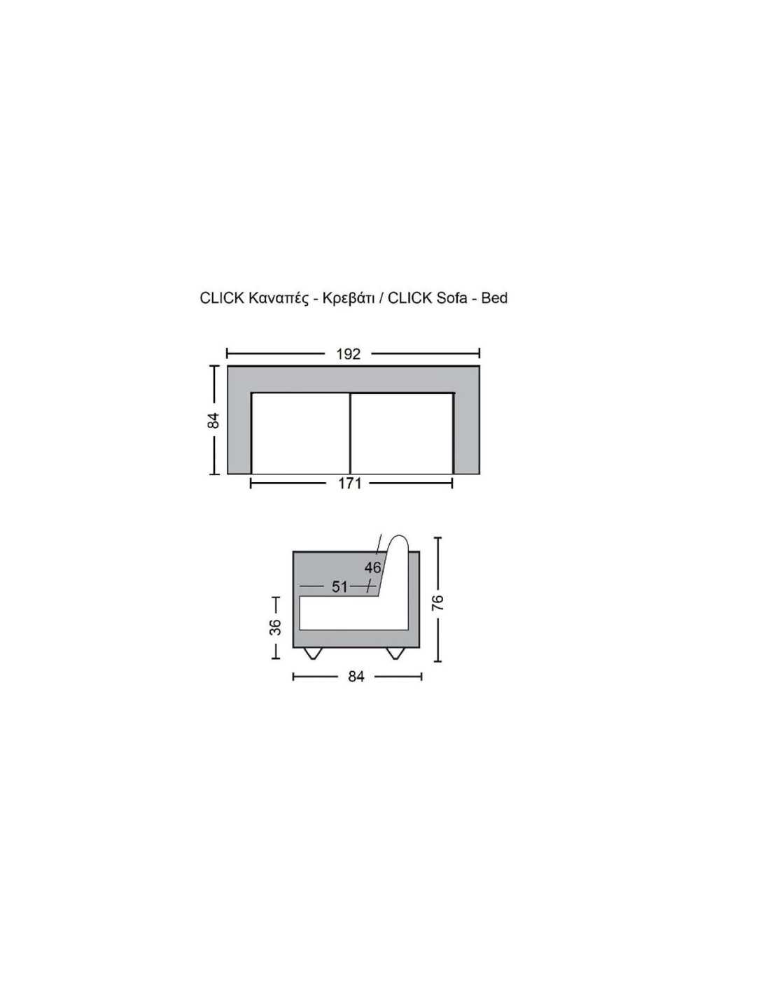 CLICK Sofa-Bed Fabric Suede Ecru