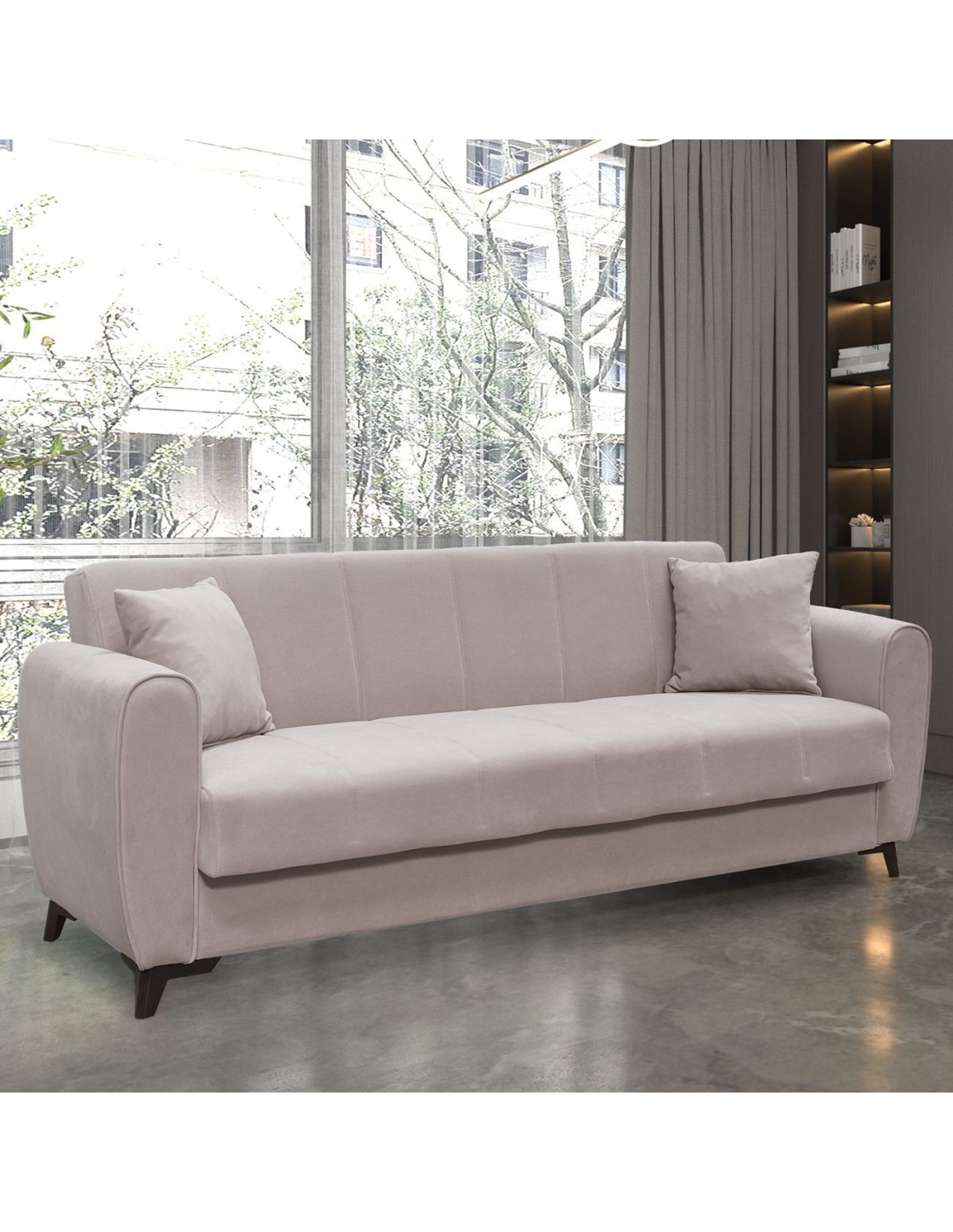 JEROM Sofa-Bed with Storage 3-Seater - Fabric Cappuccino