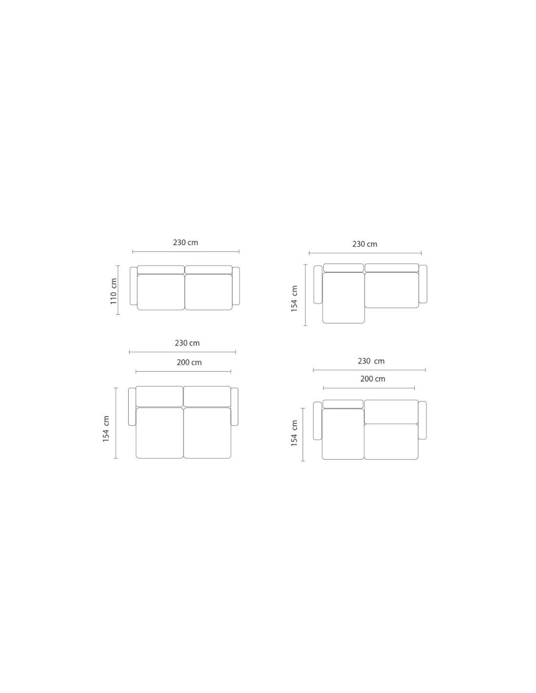 Sofa dimensions: 230×110 cm, 230x154 cm
