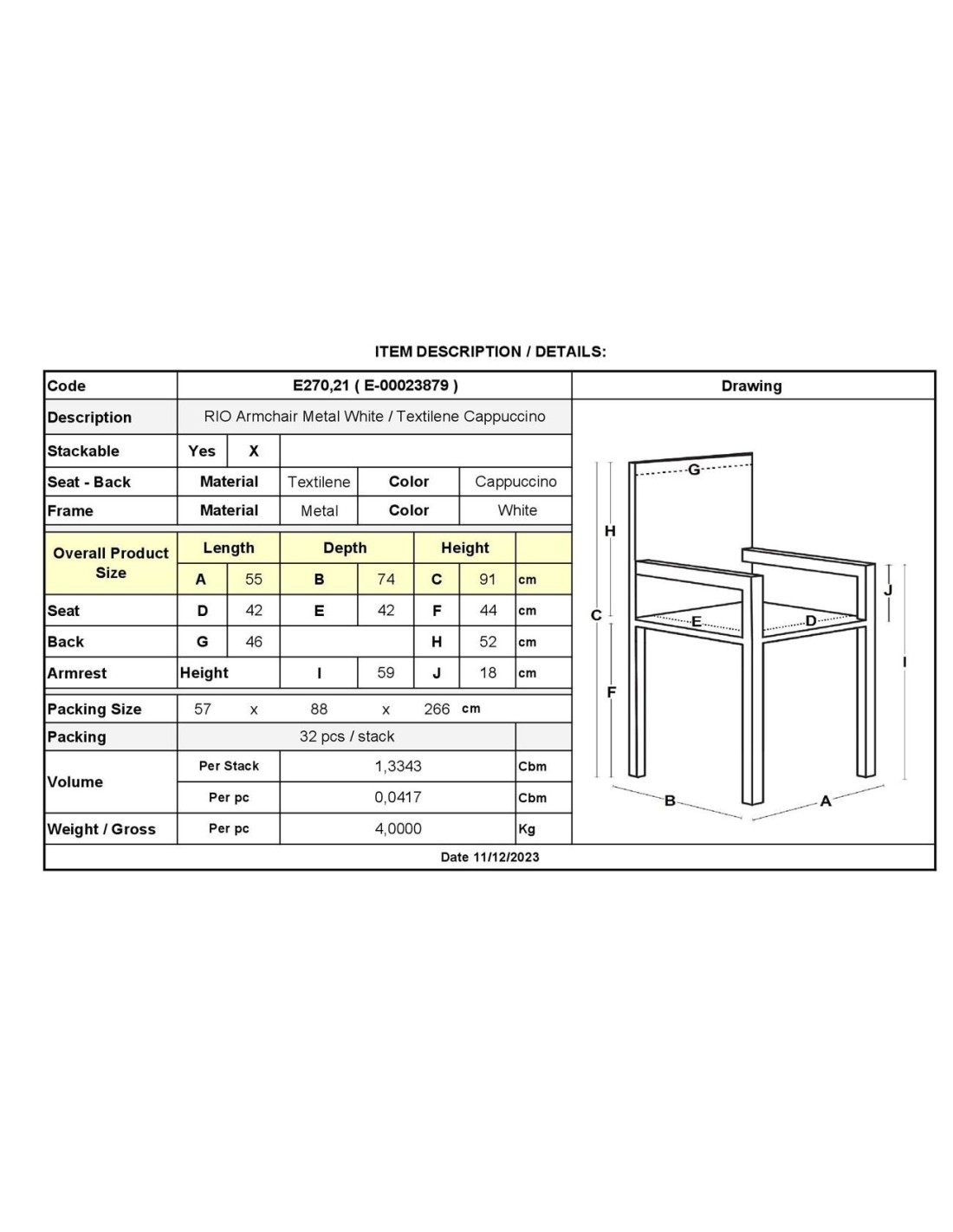 RIO Armchair Metal White-Textilene Cappuccino (4,20 Kg)