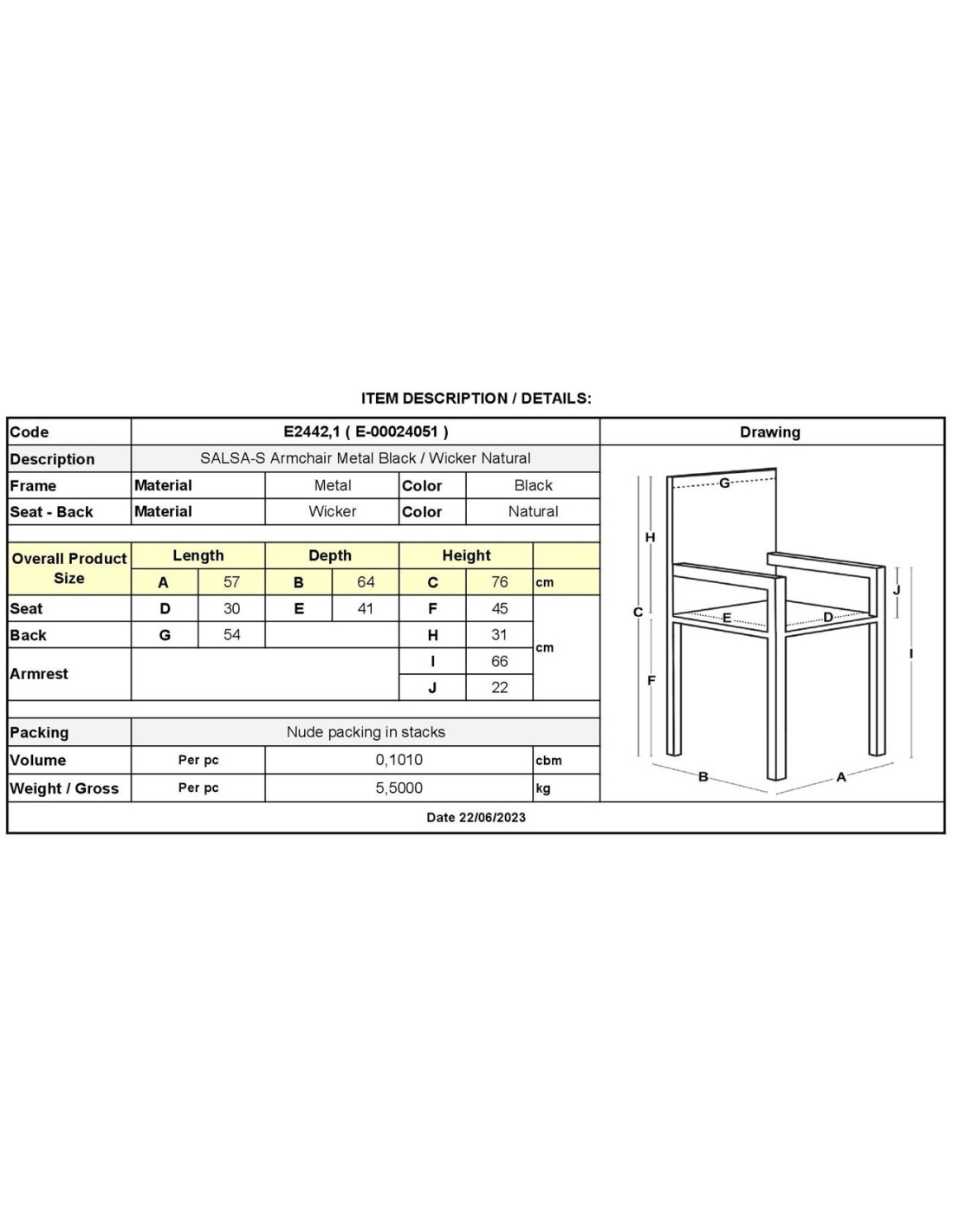 SALSA-S Armchair Metal Black-Wicker Natural (w-o cushion)