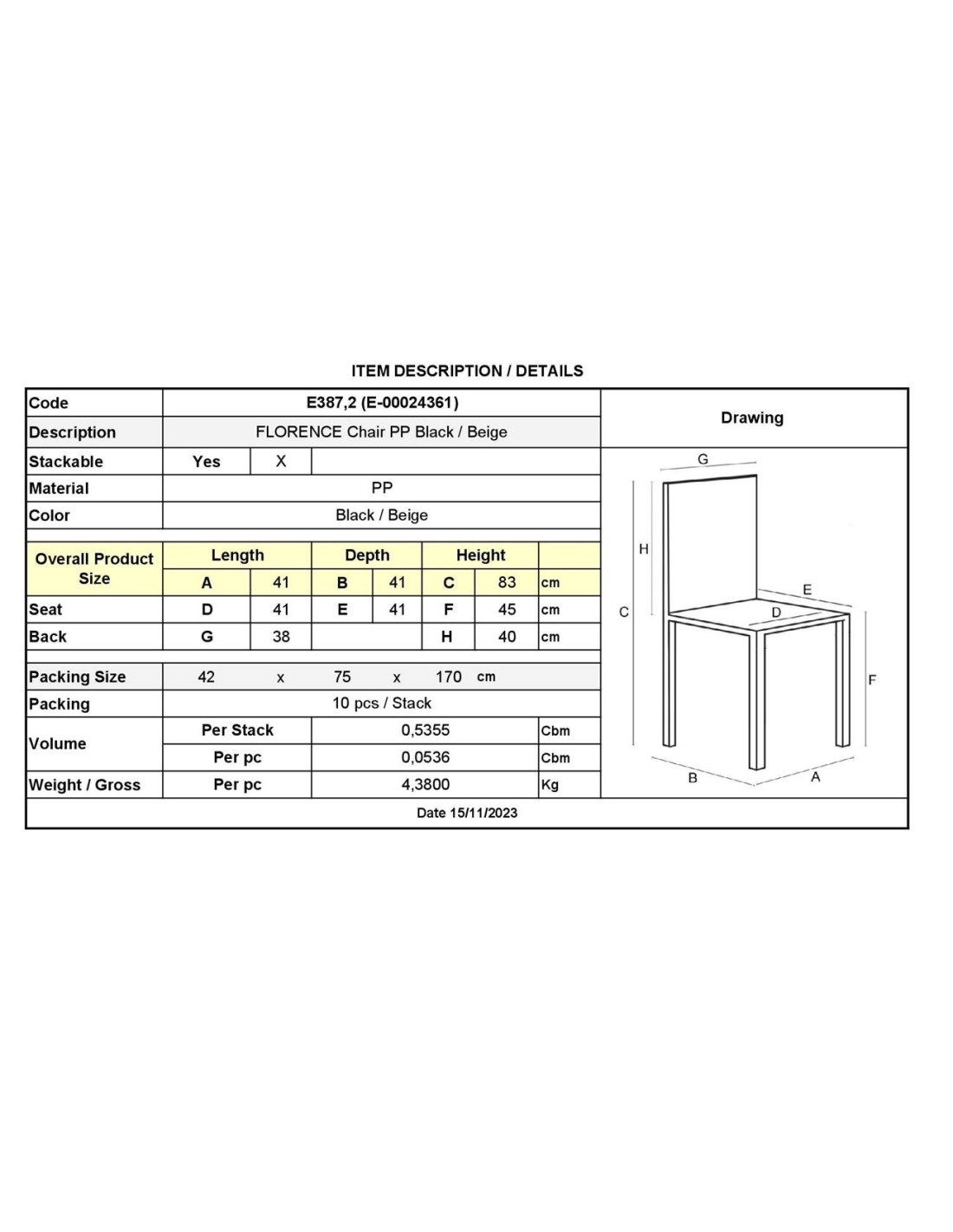 FLORENCE Stacking Chair PP Black-Beige