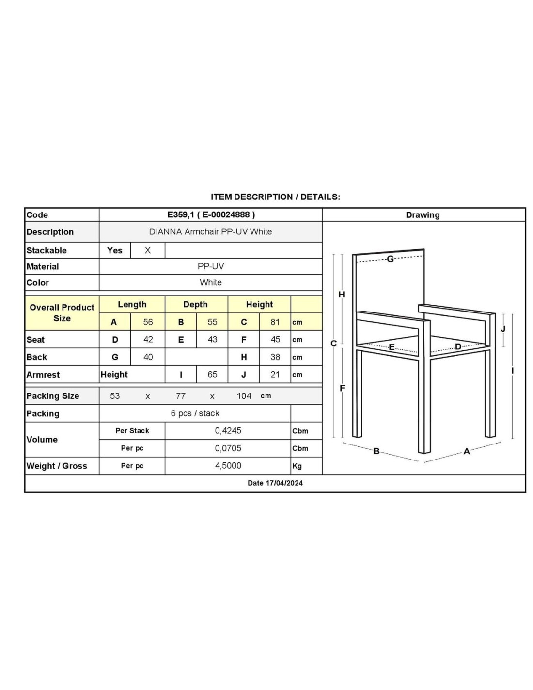 DIANNA Armchair PP-UV White